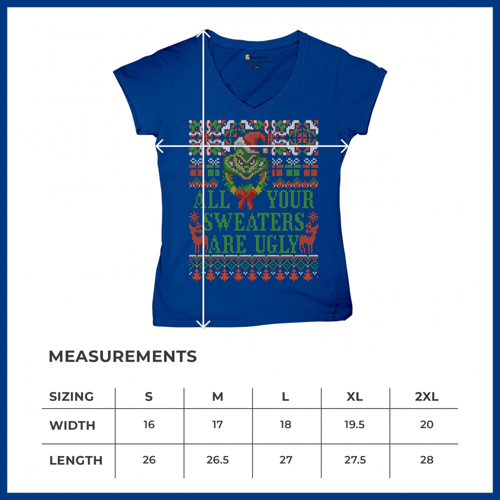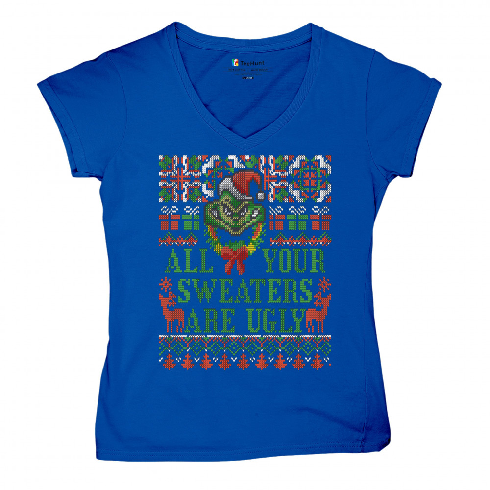 ALL YOUR SWEATERS ARE UGLY women's v-neck t-shirt merry christmas rudolph tee royal blue
