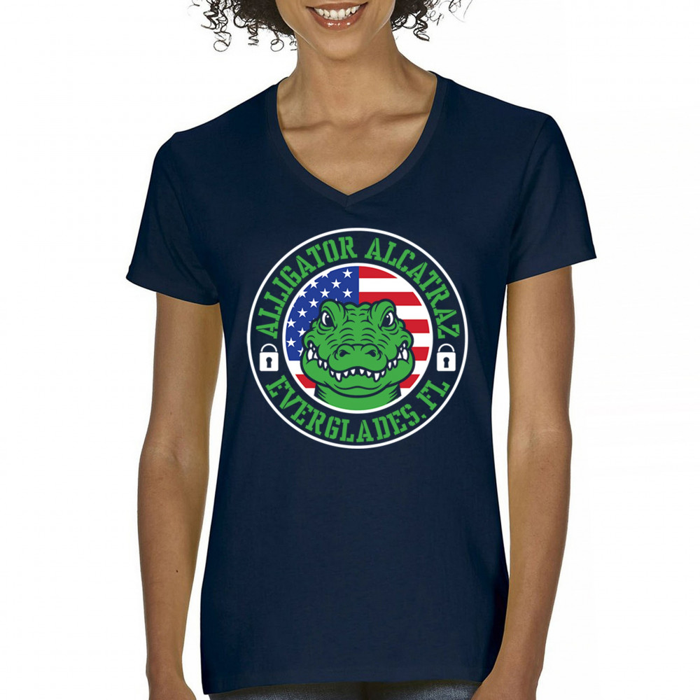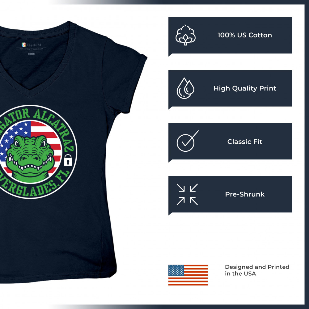 Bold Alligator Alcatraz design with USA flag and conservative message. Patriotic, America First, and proud to take a stand for national values.