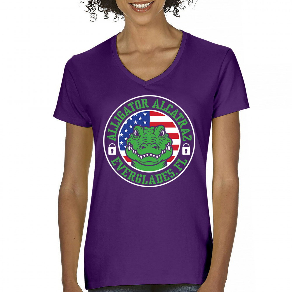 Bold Alligator Alcatraz design with USA flag and conservative message. Patriotic, America First, and proud to take a stand for national values.