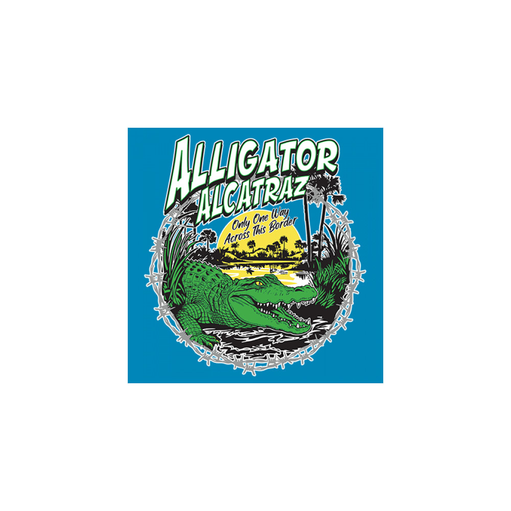 Alligator Alcatraz design with border security message. For conservative, Republican, and patriotic Americans who stand for America First values.