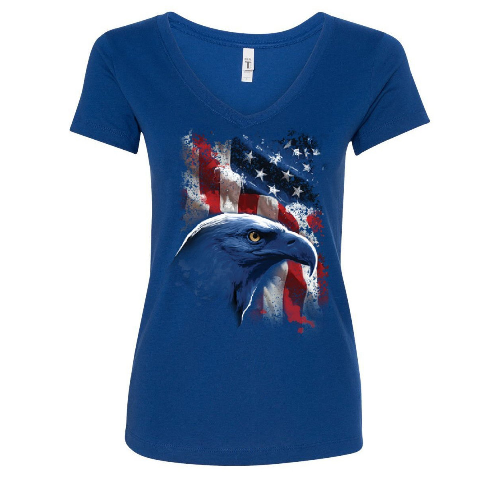 AMERICAN BALD EAGLE STARS AND STRIPES american bald eagle women's v-neck t-shirt american flag 4th of july patriotic royal blue