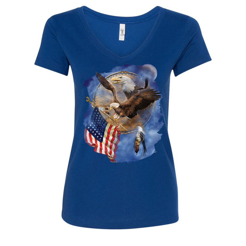 BALD EAGLE DREAM CATCHER american bald eagle holding a flag women's v-neck t-shirt patriot dreamcatcher royal blue