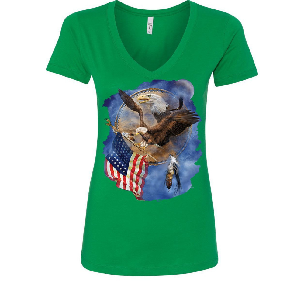 BALD EAGLE DREAM CATCHER american bald eagle holding a flag women's v-neck t-shirt patriot dreamcatcher green