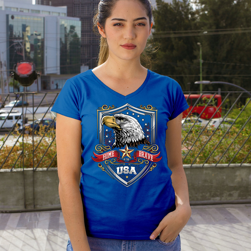 Honor American spirit with this patriotic eagle shield design shirt. Featuring a bold bald eagle emblem, stars and stripes shield, and red white blue accents, it’s perfect for Veteran’s Day, 4th of July, and military pride. A true American pride shirt for those who live by “home of the brave, land of the free.â€