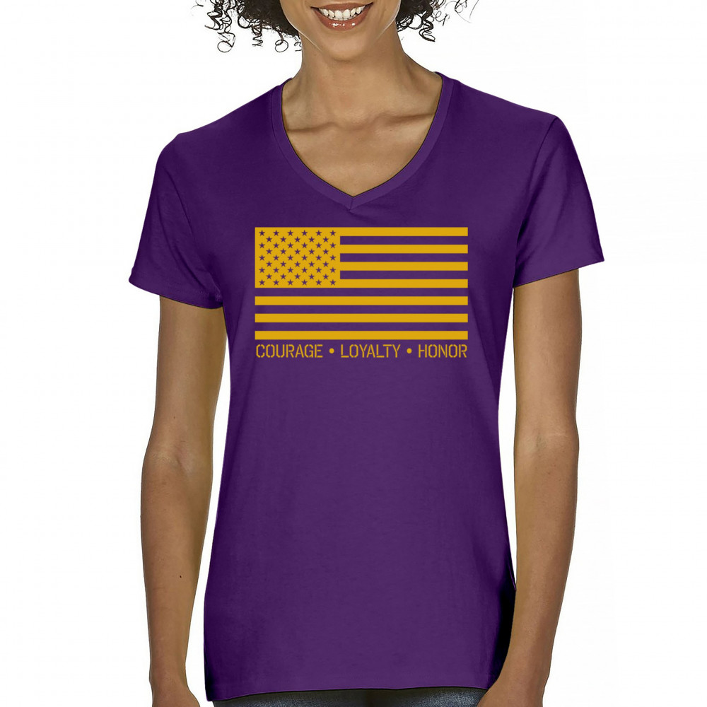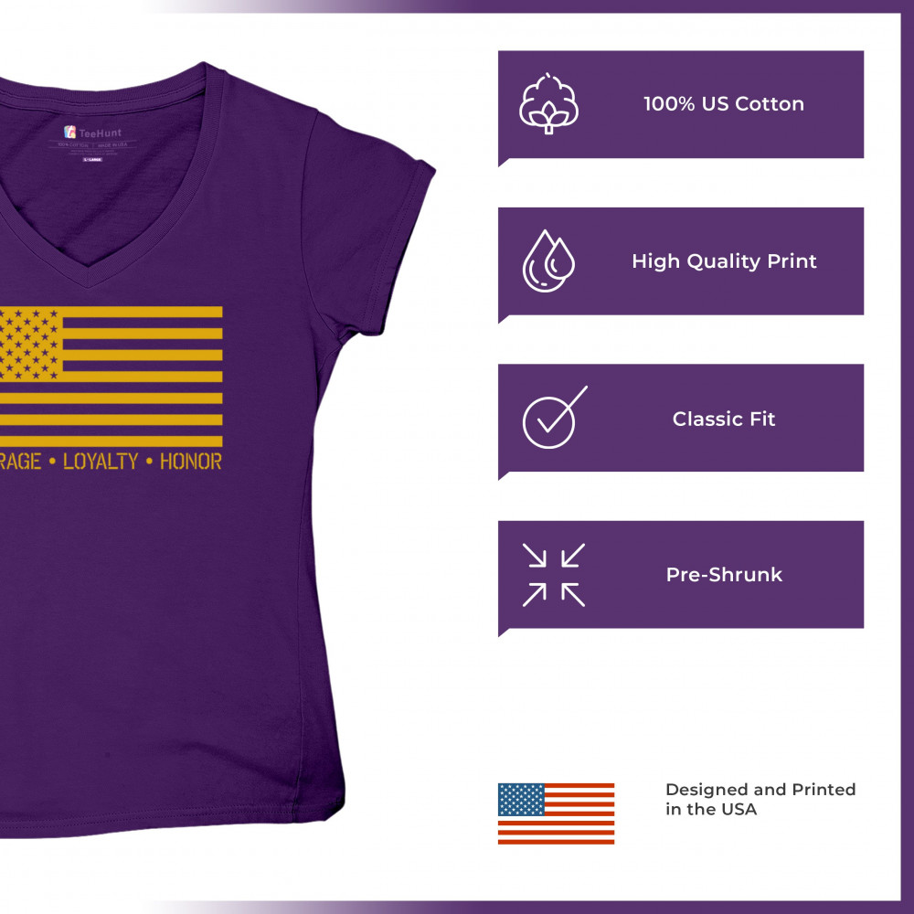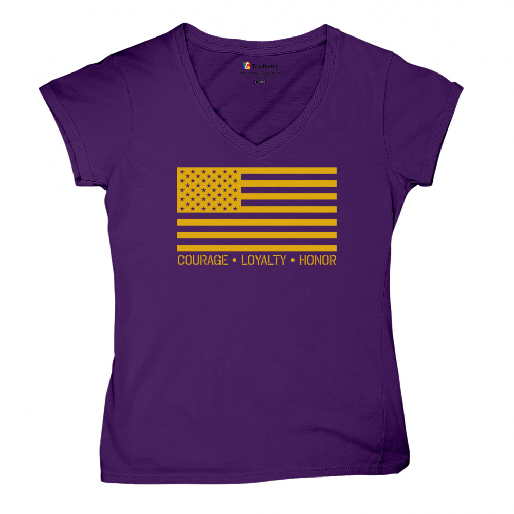 Honor the brave with our "Courage, Loyalty, Honor" USA flag shirt. Perfect for veterans and patriots. Ideal for Memorial Day and Veterans Day.