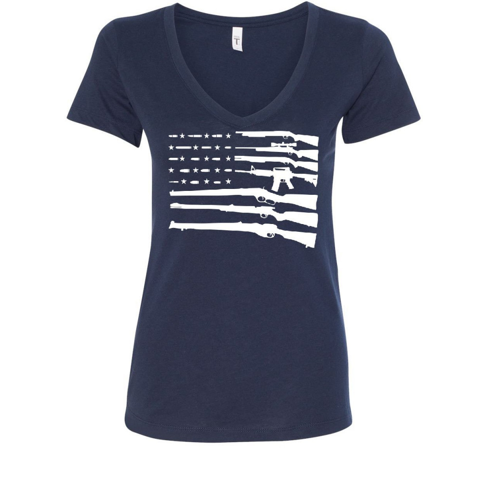 AMERICAN GUN FLAG american flag guns 2nd amendment women's v-neck tee gun rights navy blue