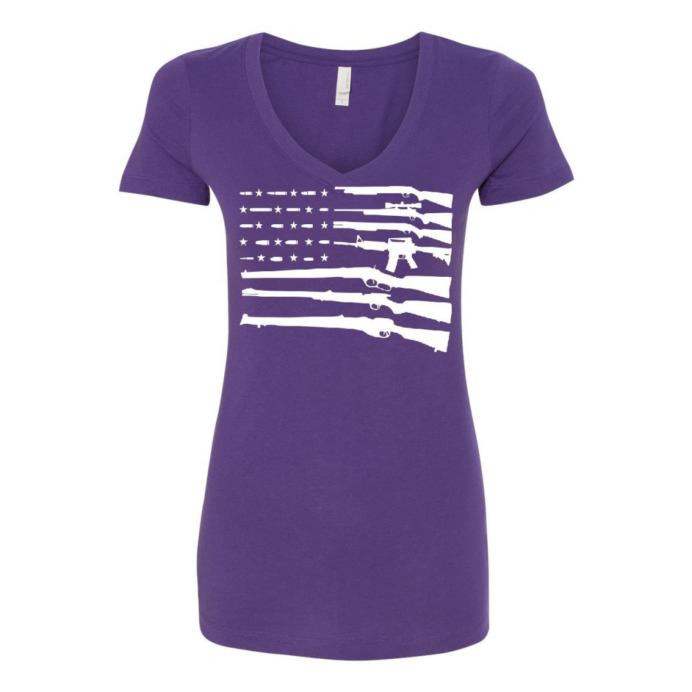 AMERICAN GUN FLAG american flag guns 2nd amendment women's v-neck tee gun rights purple