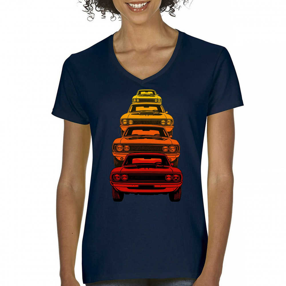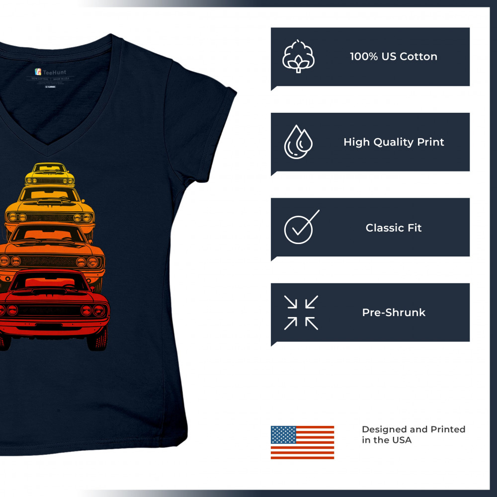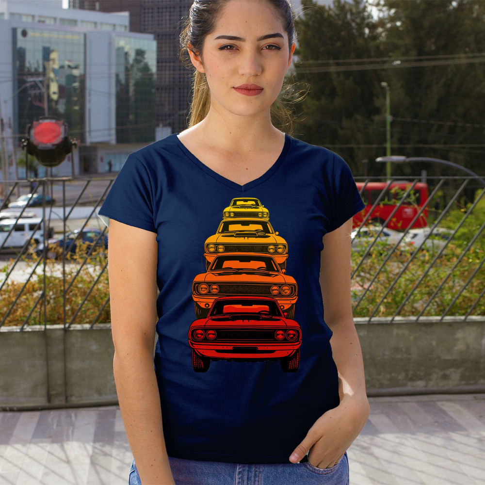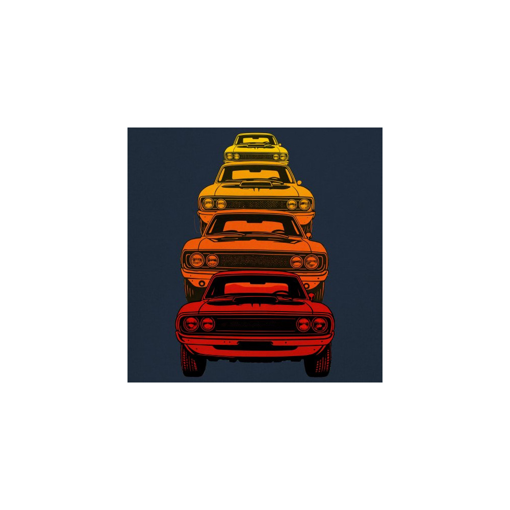 Celebrate horsepower heritage with this colorful lineup of classic muscle cars. Featuring a stacked gradient from red to yellow, this design brings bold retro attitude, V8 pride, and American torque to life. Perfect for collectors, gearheads, and fans of classic car power.