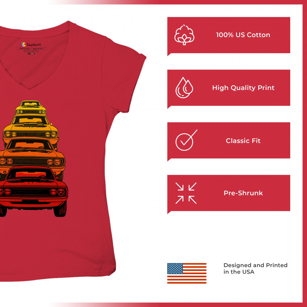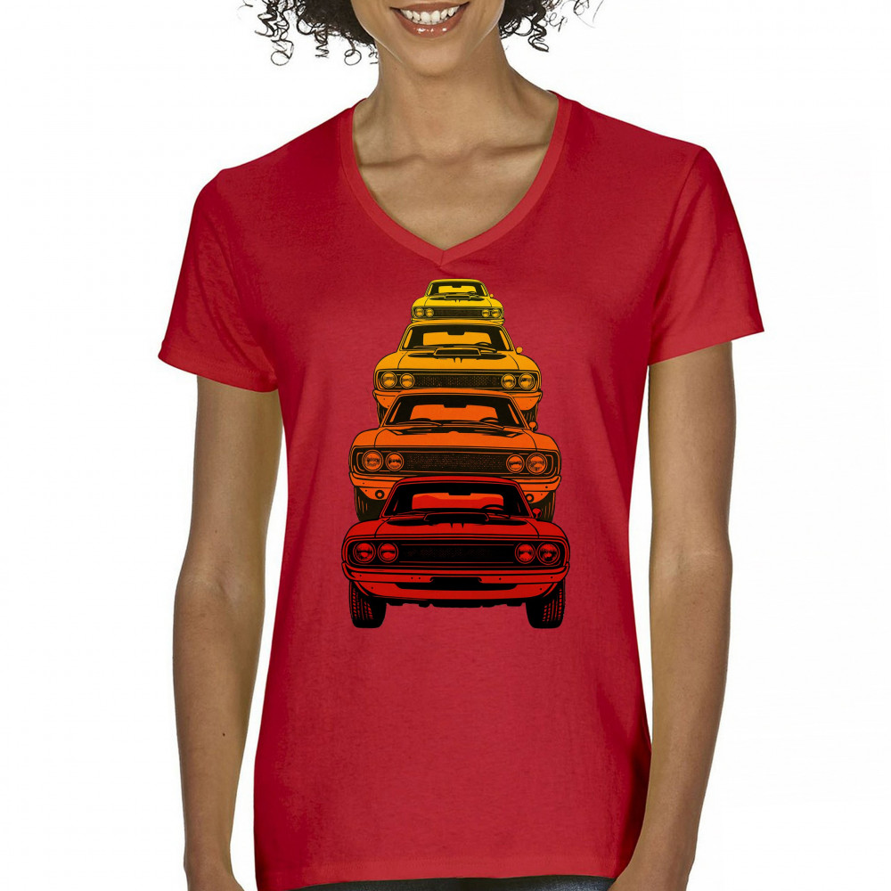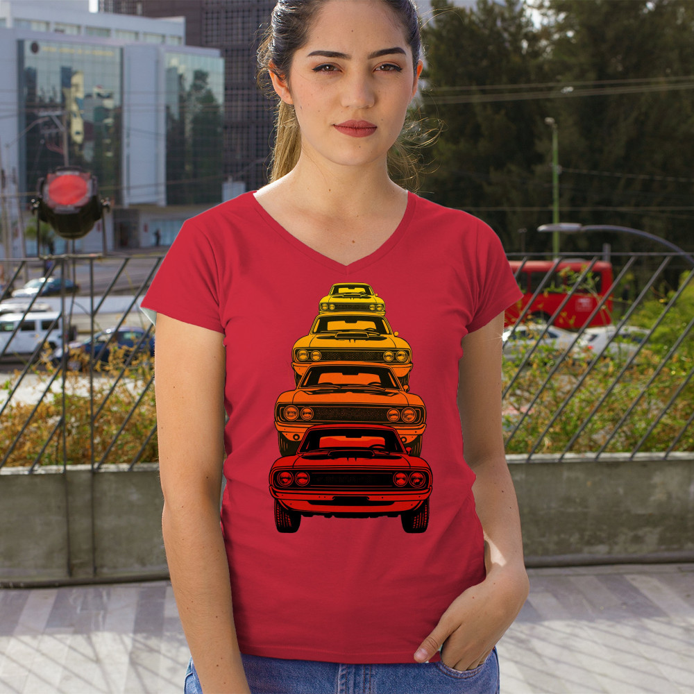 Celebrate horsepower heritage with this colorful lineup of classic muscle cars. Featuring a stacked gradient from red to yellow, this design brings bold retro attitude, V8 pride, and American torque to life. Perfect for collectors, gearheads, and fans of classic car power.