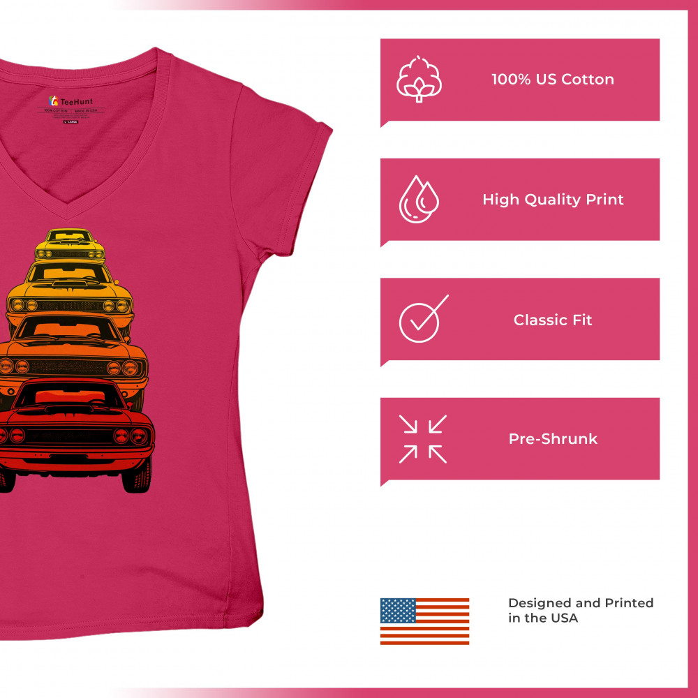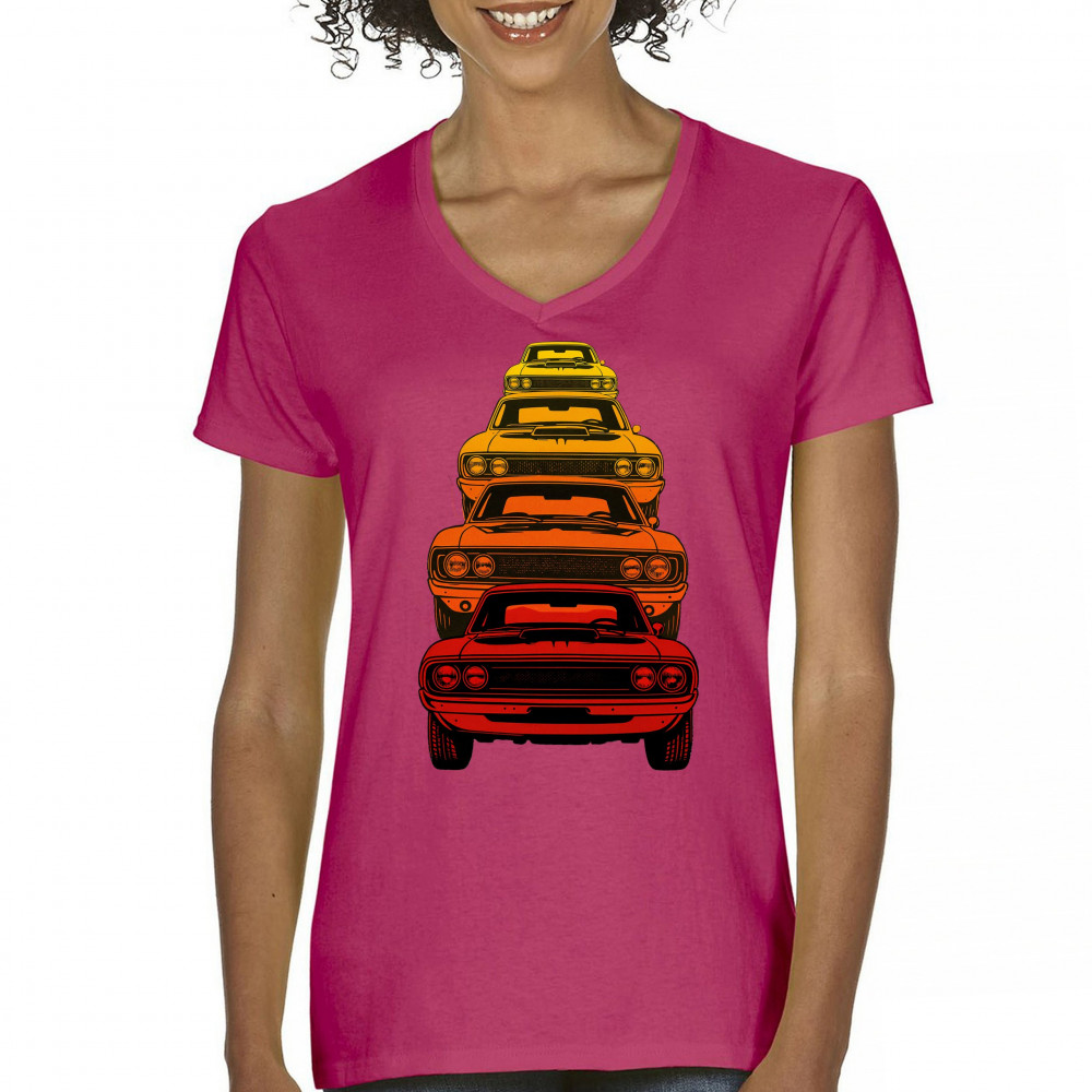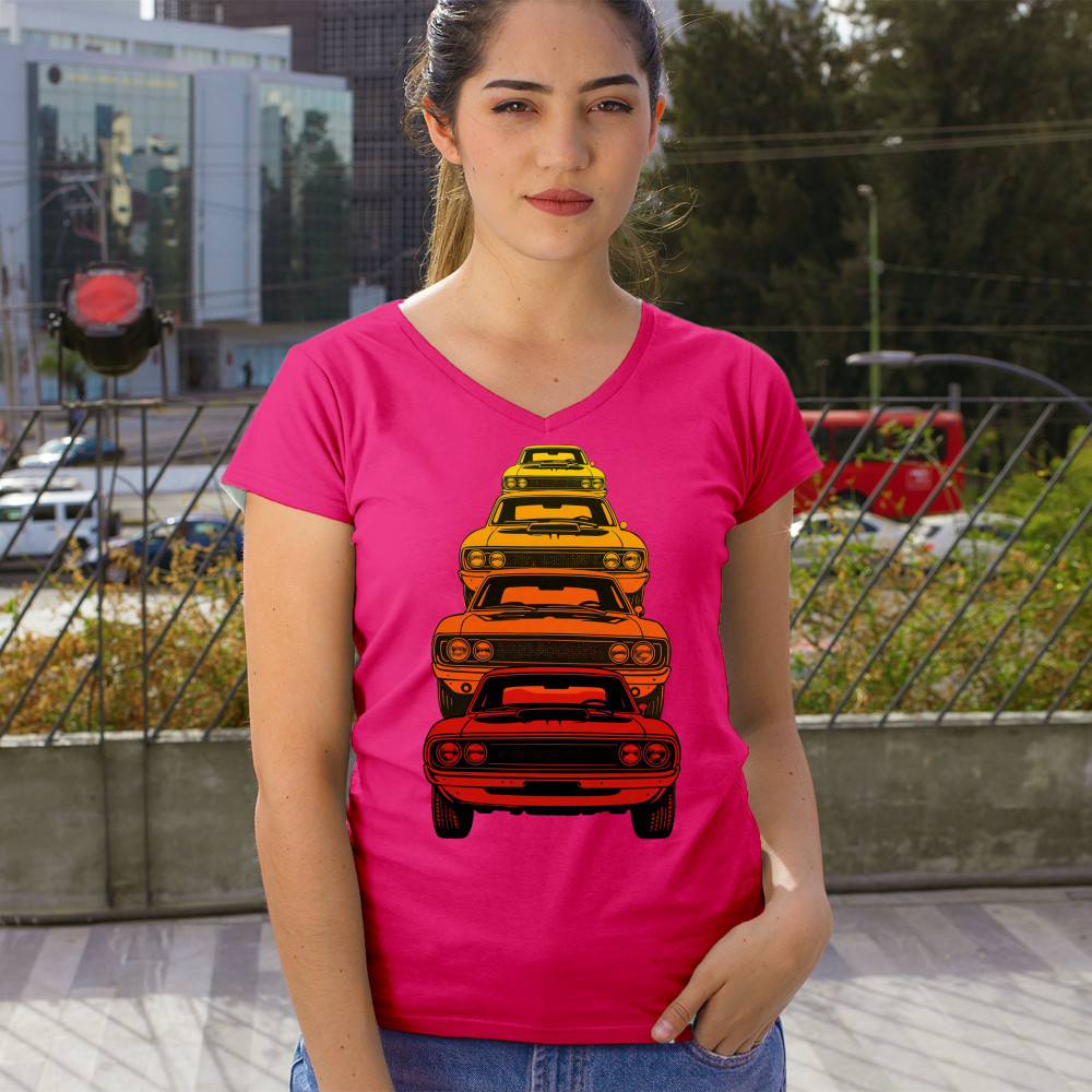 Celebrate horsepower heritage with this colorful lineup of classic muscle cars. Featuring a stacked gradient from red to yellow, this design brings bold retro attitude, V8 pride, and American torque to life. Perfect for collectors, gearheads, and fans of classic car power.
