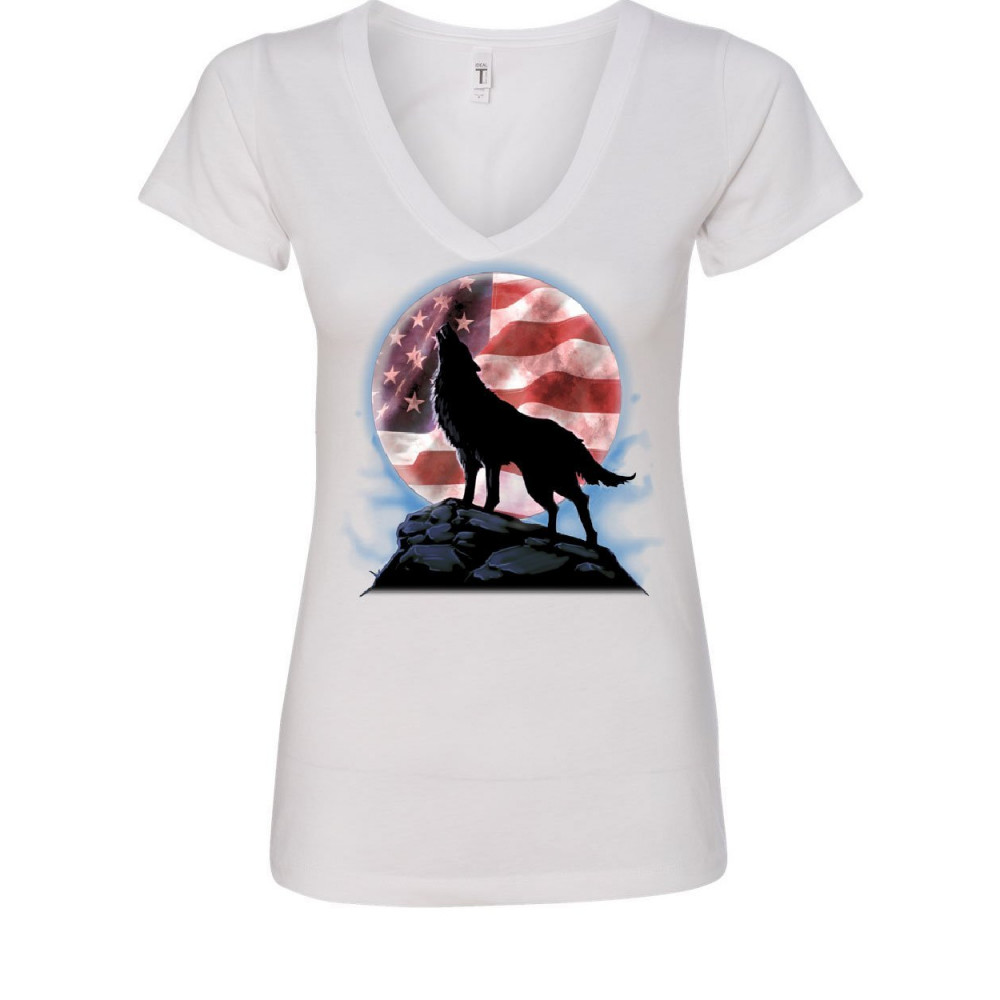 AMERICAN HOWLING WOLF women's v-neck t-shirt wildlife animal wolves wilderness white