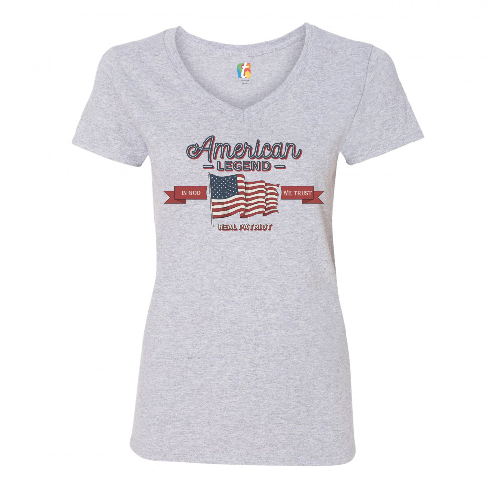 AMERICAN LEGEND REAL PATRIOT women's v-neck t-shirt 4th of july usa flag tee gray