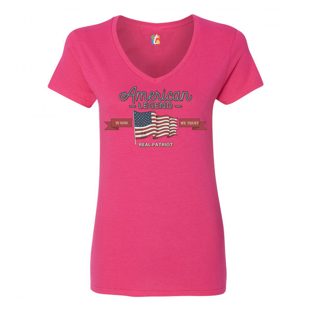 AMERICAN LEGEND REAL PATRIOT women's v-neck t-shirt 4th of july usa flag tee pink