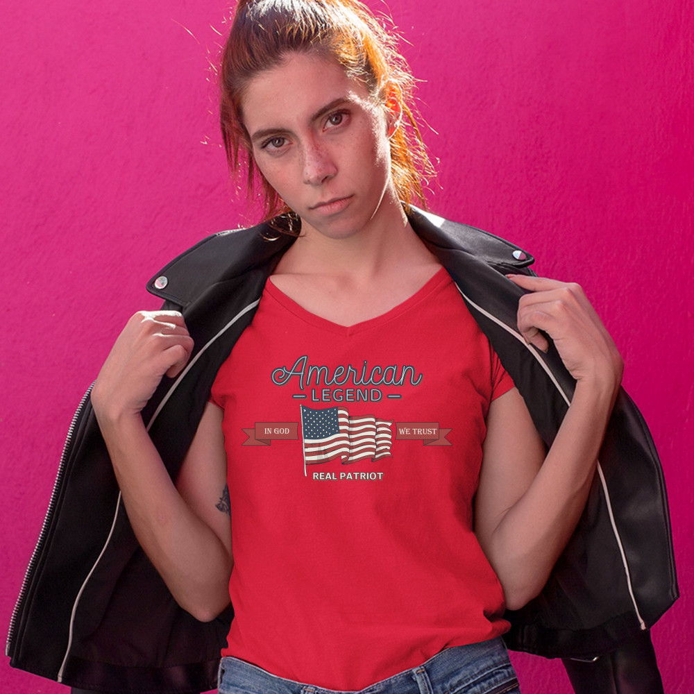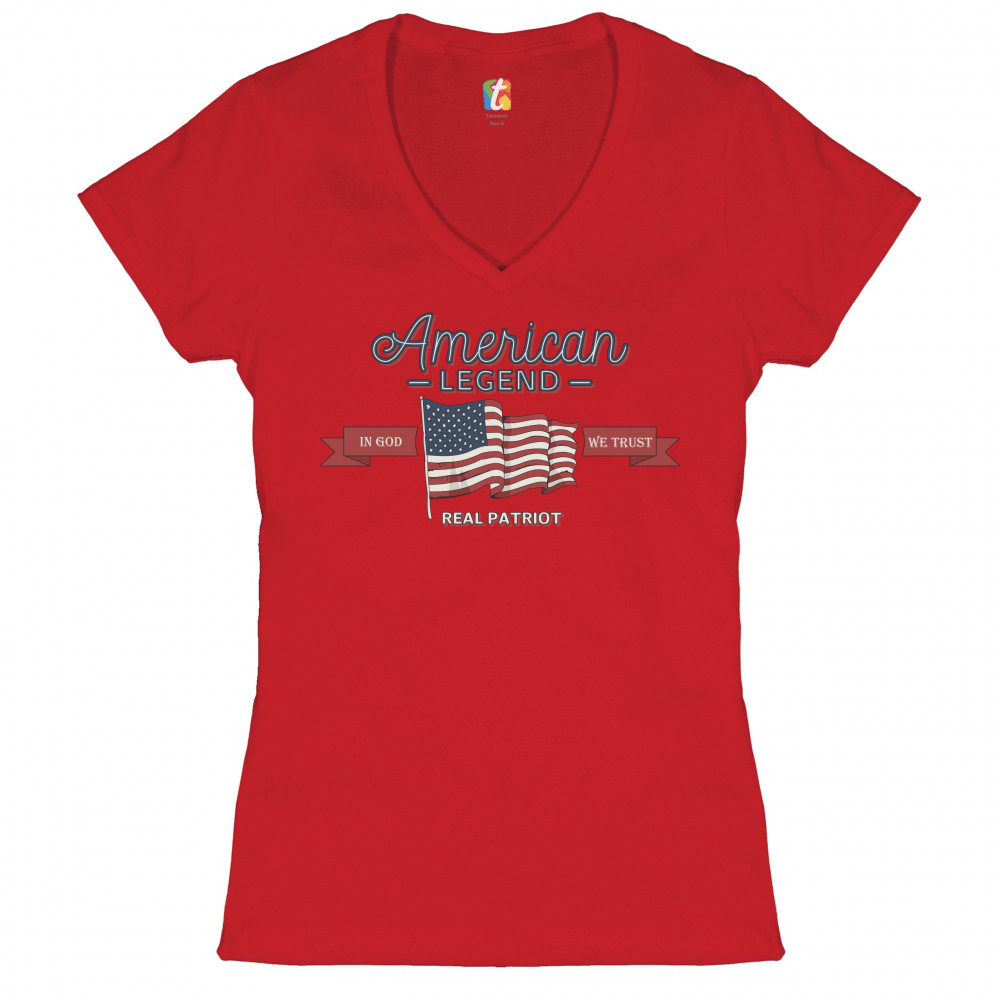 AMERICAN LEGEND REAL PATRIOT women's v-neck t-shirt 4th of july usa flag tee red