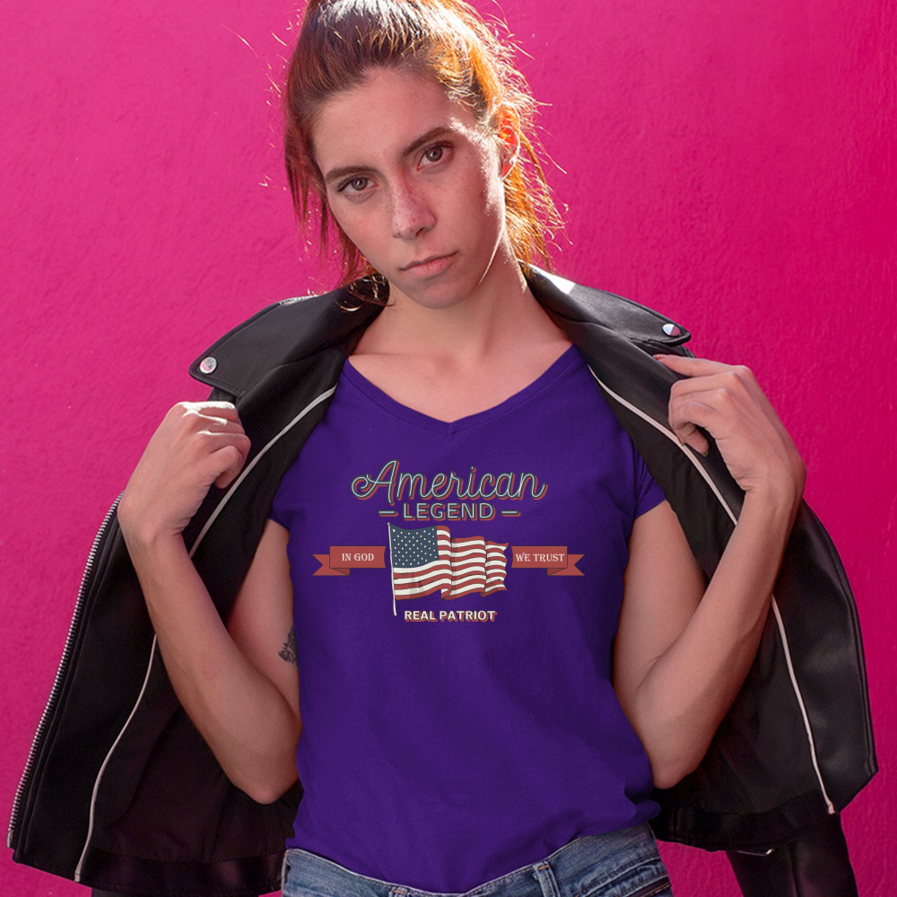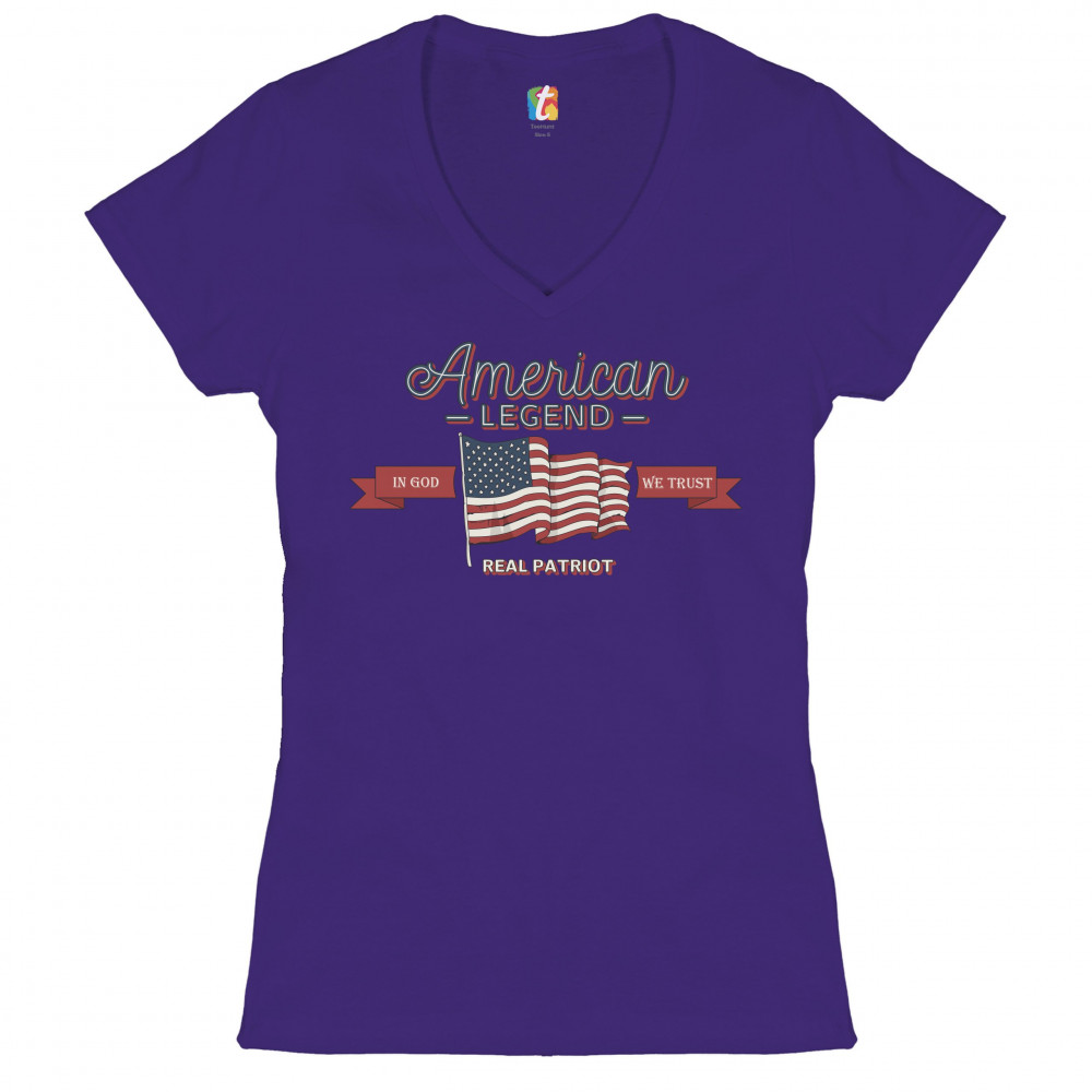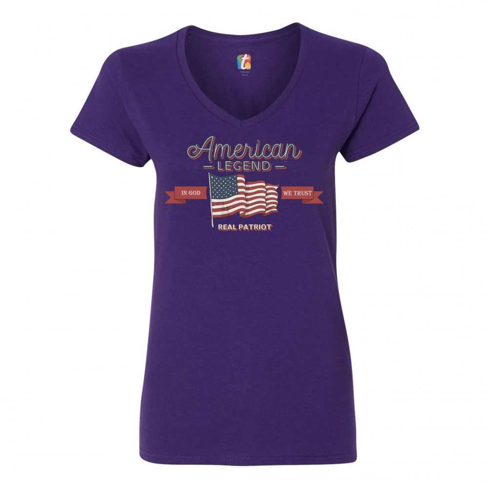AMERICAN LEGEND REAL PATRIOT women's v-neck t-shirt 4th of july usa flag tee purple