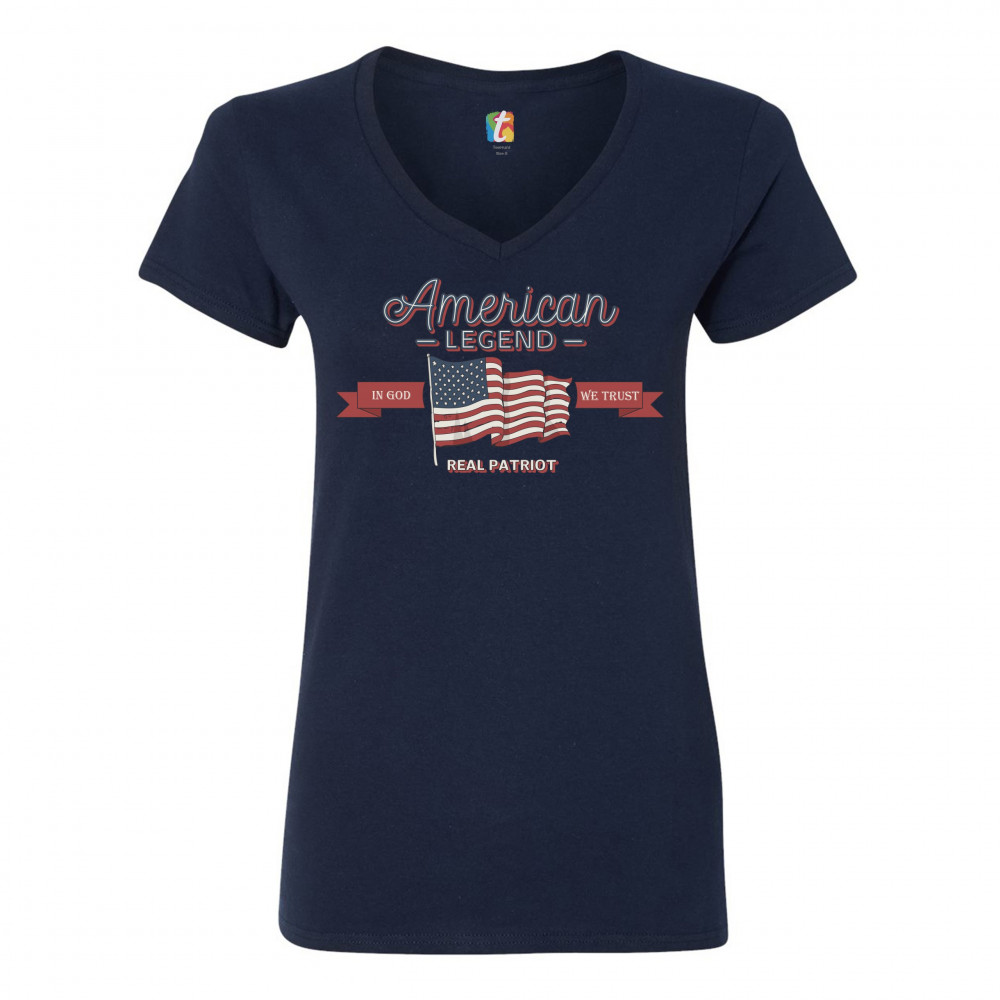 AMERICAN LEGEND REAL PATRIOT women's v-neck t-shirt 4th of july usa flag tee navy blue