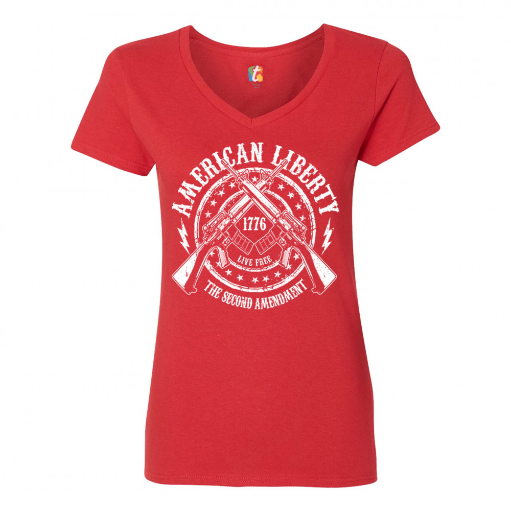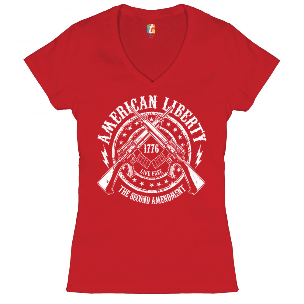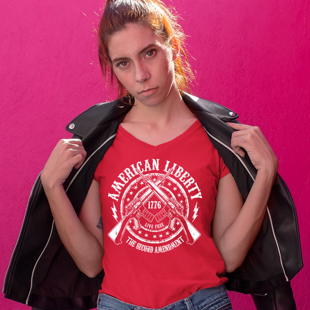 AMERICAN LIBERTY LIVE FREE women's v-neck t-shirt the 2nd amendment 1776 tee red