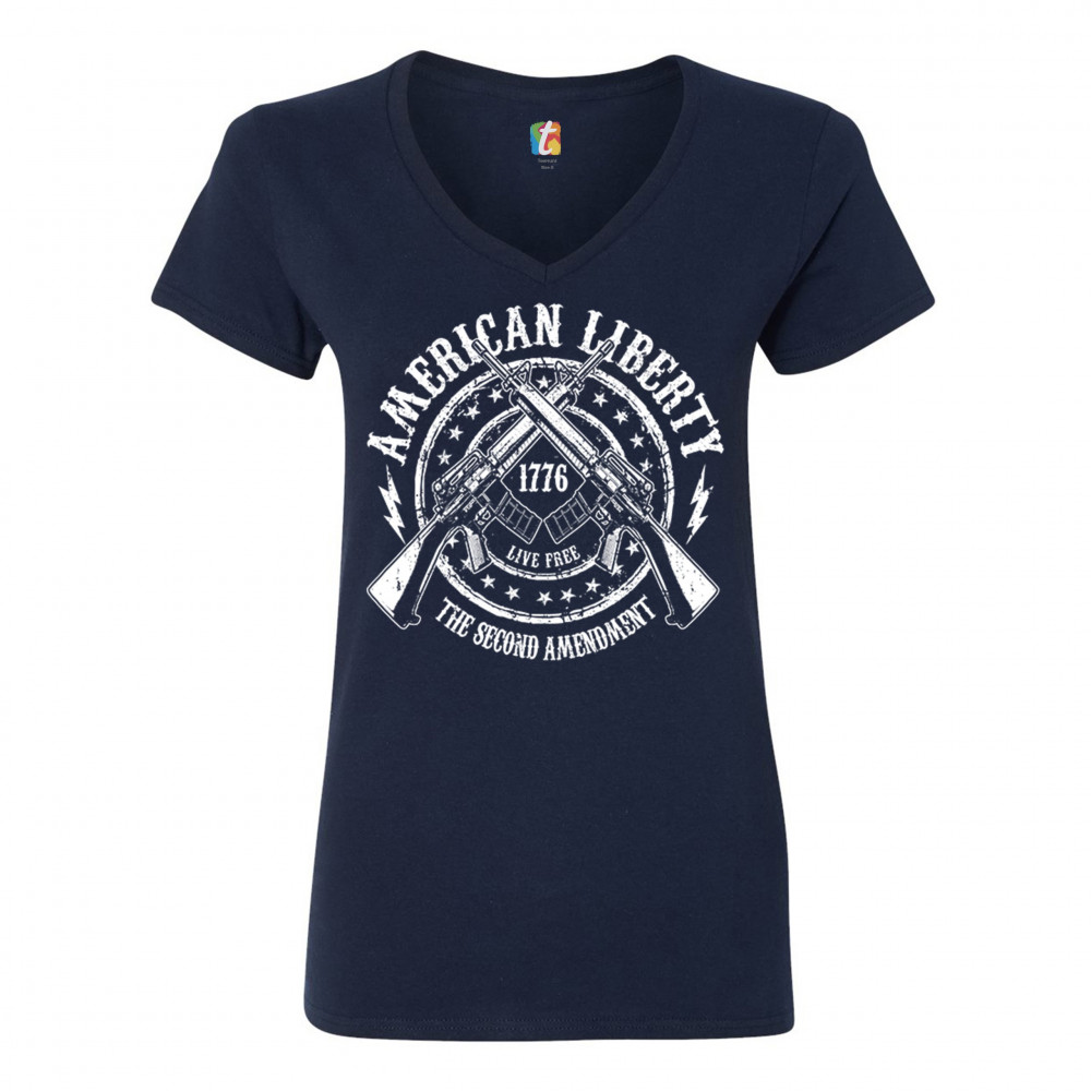 AMERICAN LIBERTY LIVE FREE women's v-neck t-shirt the 2nd amendment 1776 tee navy blue