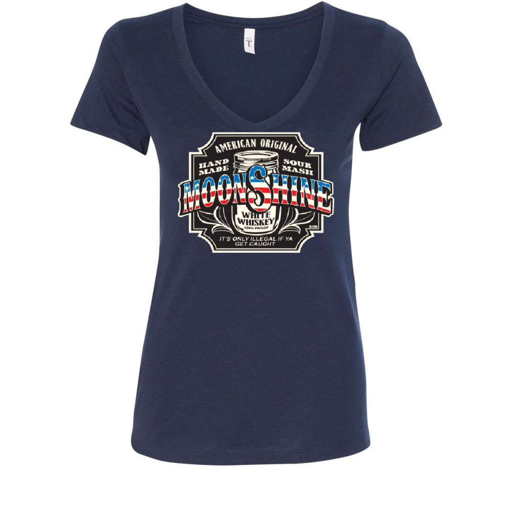 MOONSHINE AMERICAN ORIGINAL v-neck t-shirt tennessee whiskey navy blue