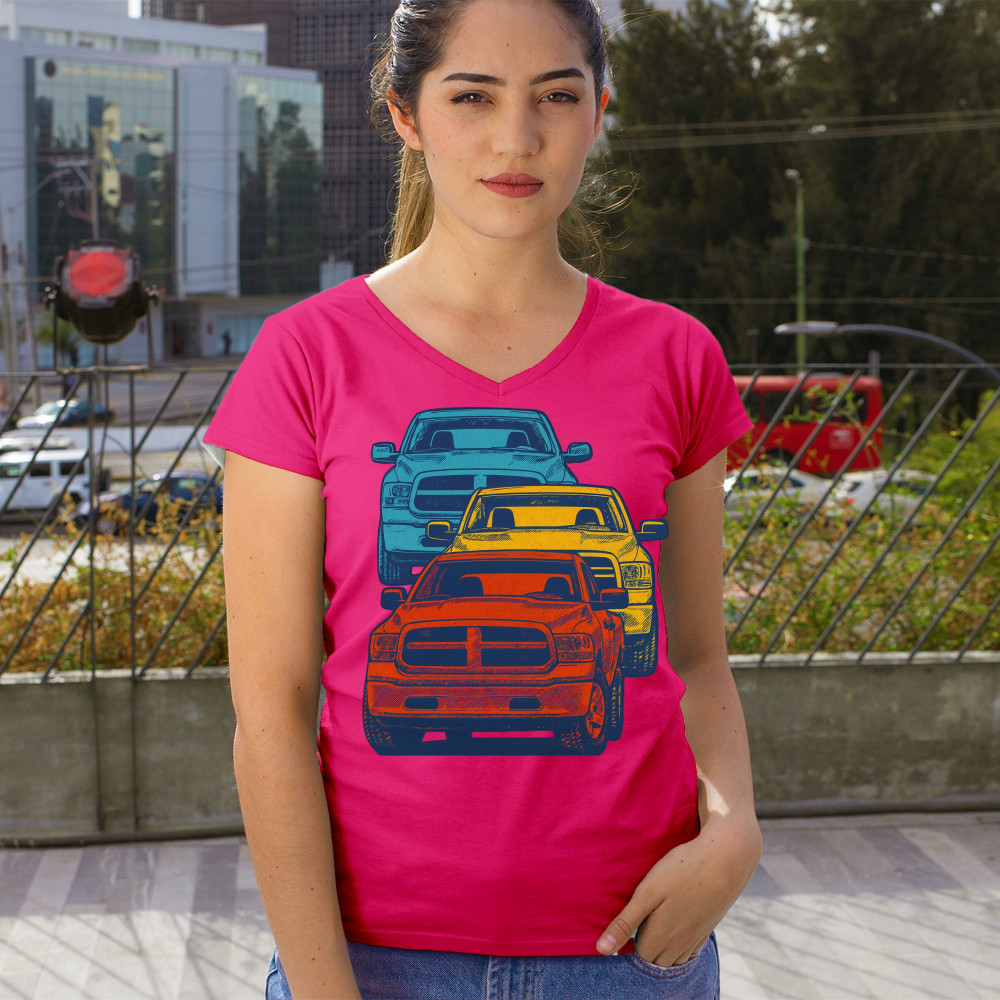 Boldly stacked and powerfully styled, this multicolor truck design showcases red, yellow, and blue pickups in a vertical formation. Made for fans of lifted truck culture, horsepower, and off-road pride, it celebrates diesel grit, road attitude, and the spirit of truck meets and gearhead unity.