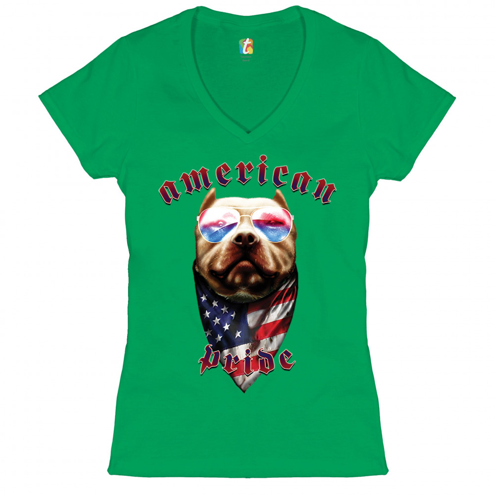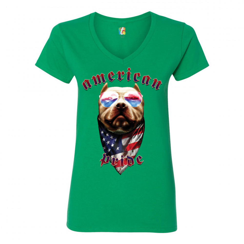 AMERICAN PRIDE PIT BULL women's v-neck t-shirt us flag patriotic dog lover tee green