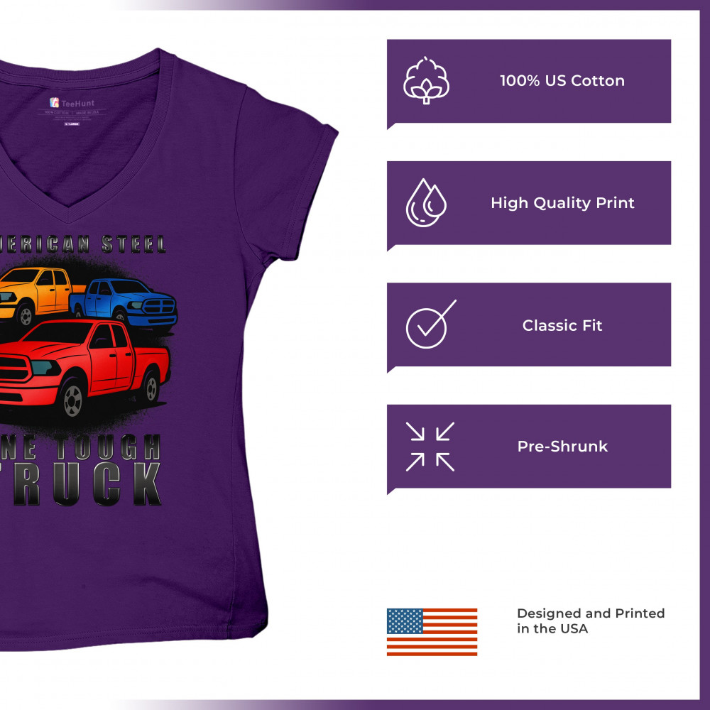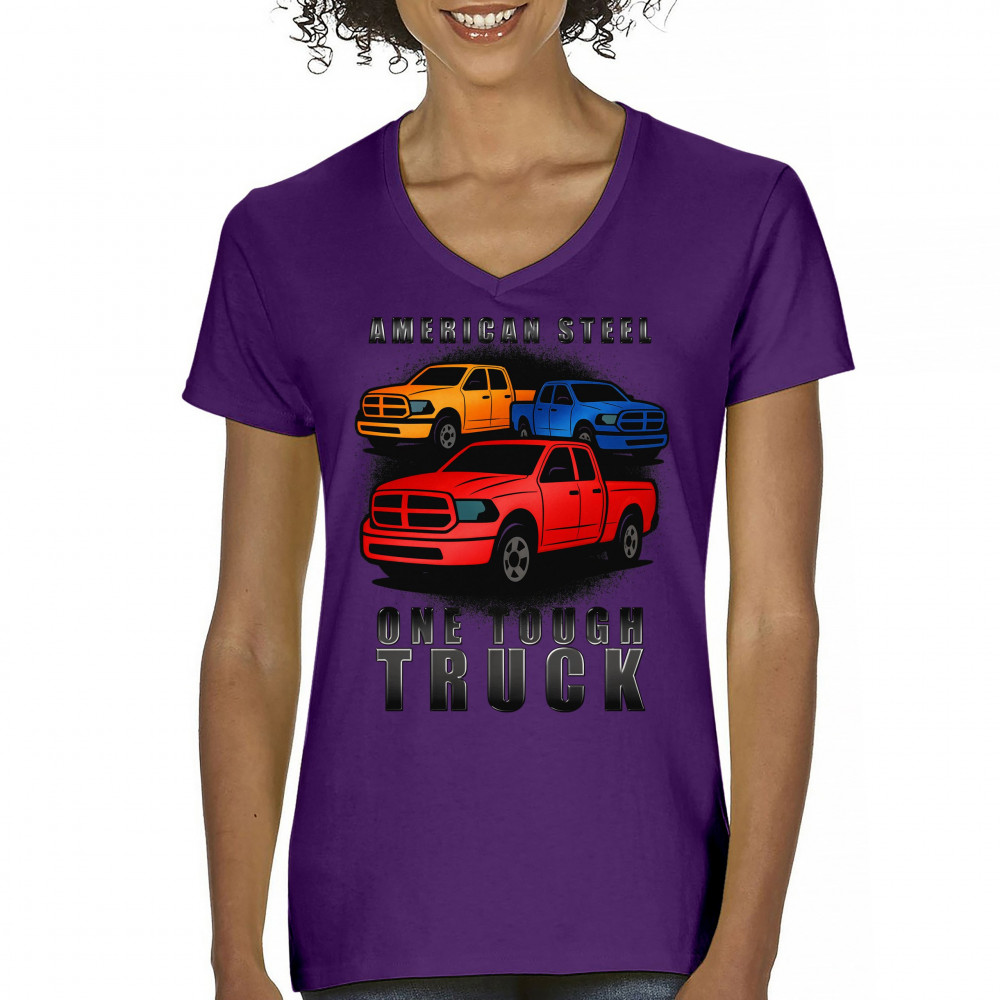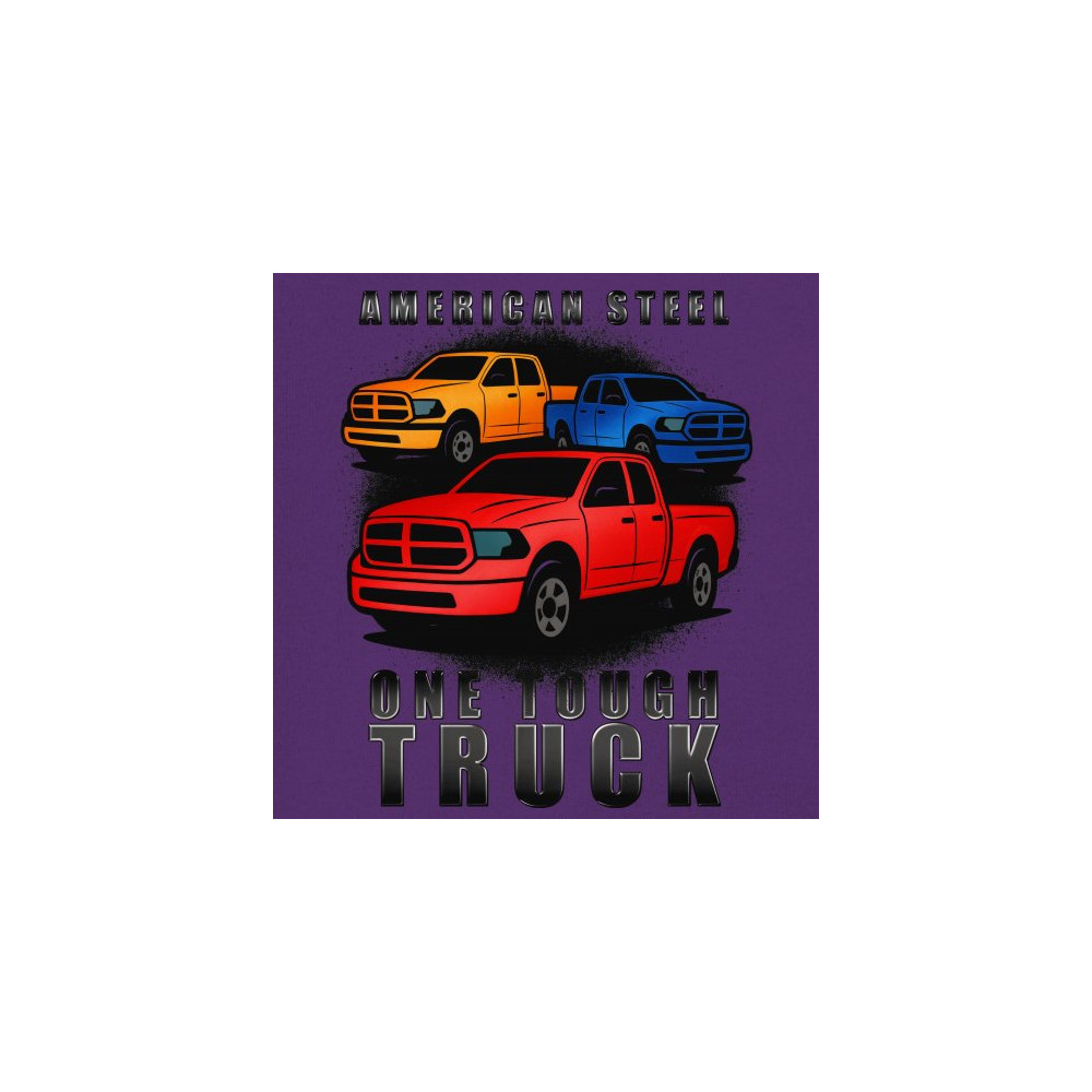 Bold truck design with red, yellow, and blue pickups. Built for fans of American steel, tough performance, and road warrior pride.