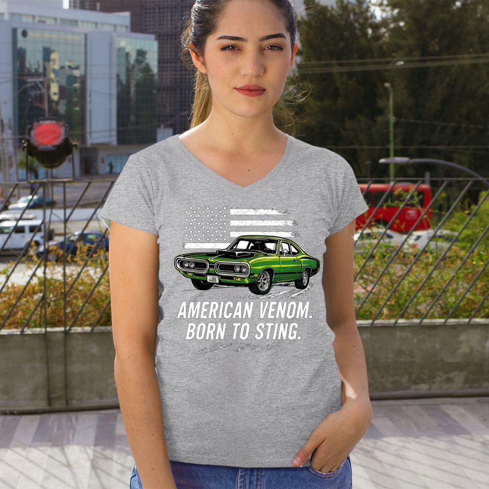 Inject venom into your street style with this bold green muscle car design. With “Born to Sting†power and a backdrop of American pride, this graphic is perfect for Scat fans, gearheads, and drivers who embrace speed, dominance, and the sound of true muscle. Rule car meets, rev battles, and highway runs with unmatched attitude.