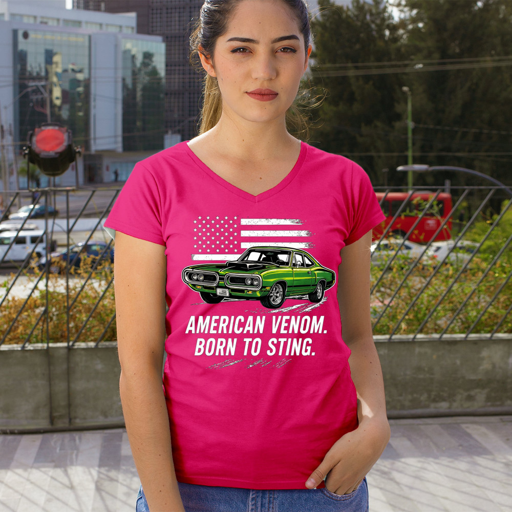 Inject venom into your street style with this bold green muscle car design. With “Born to Sting†power and a backdrop of American pride, this graphic is perfect for Scat fans, gearheads, and drivers who embrace speed, dominance, and the sound of true muscle. Rule car meets, rev battles, and highway runs with unmatched attitude.