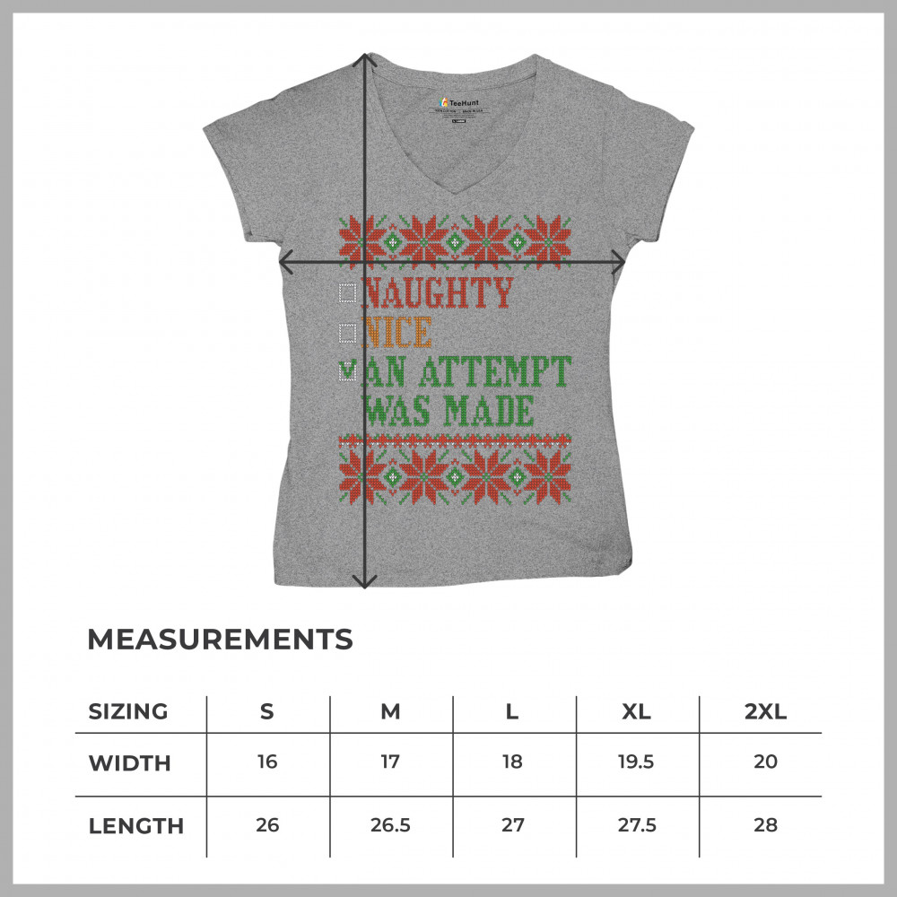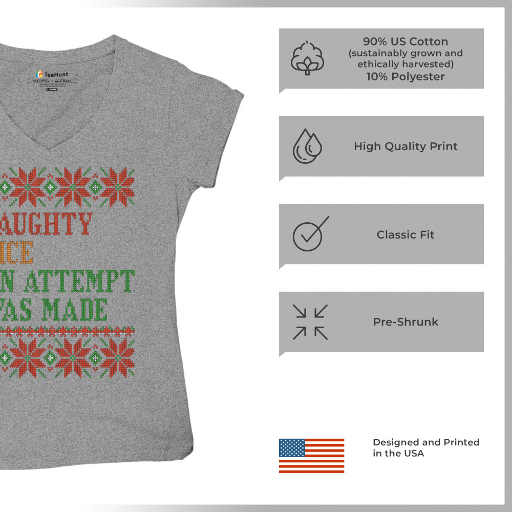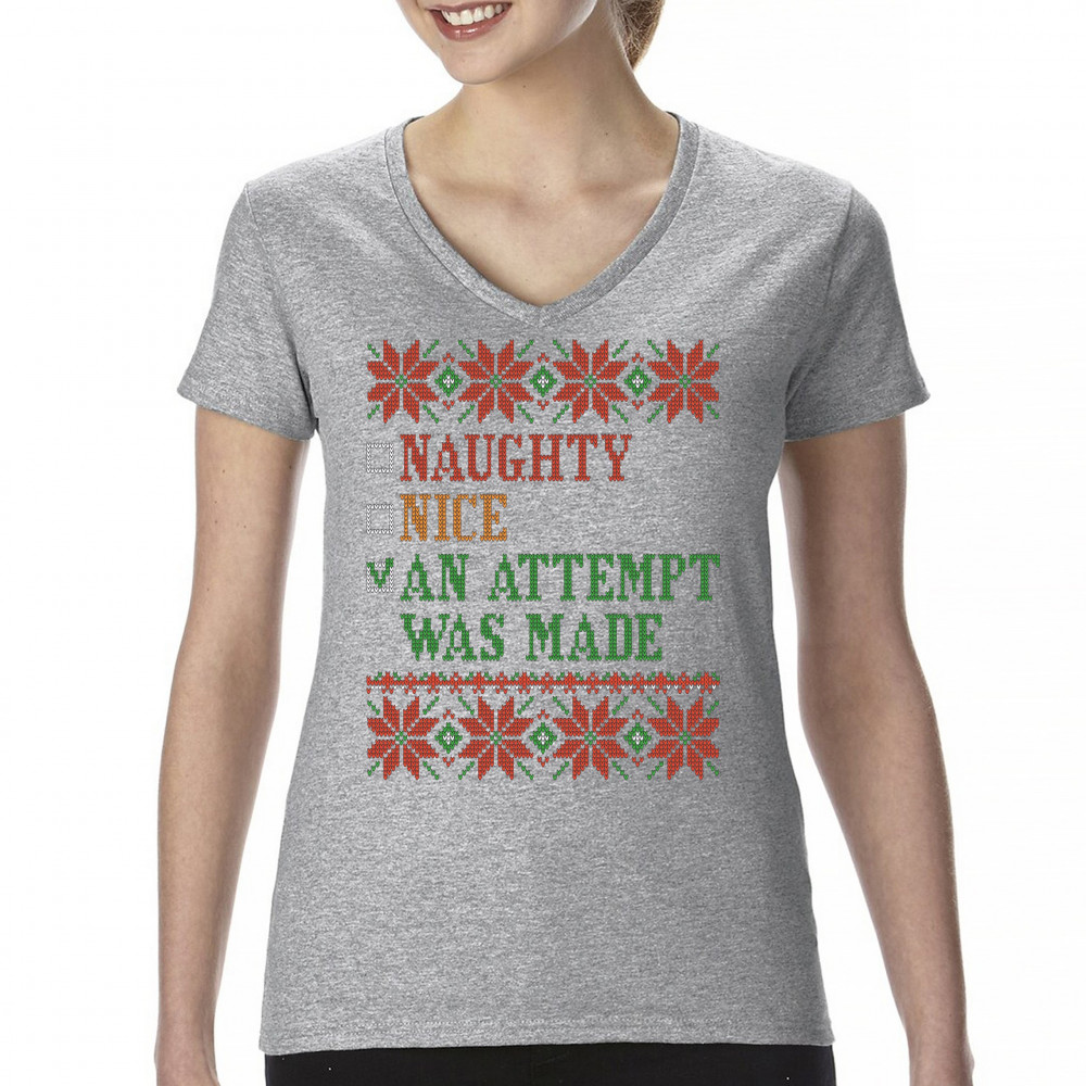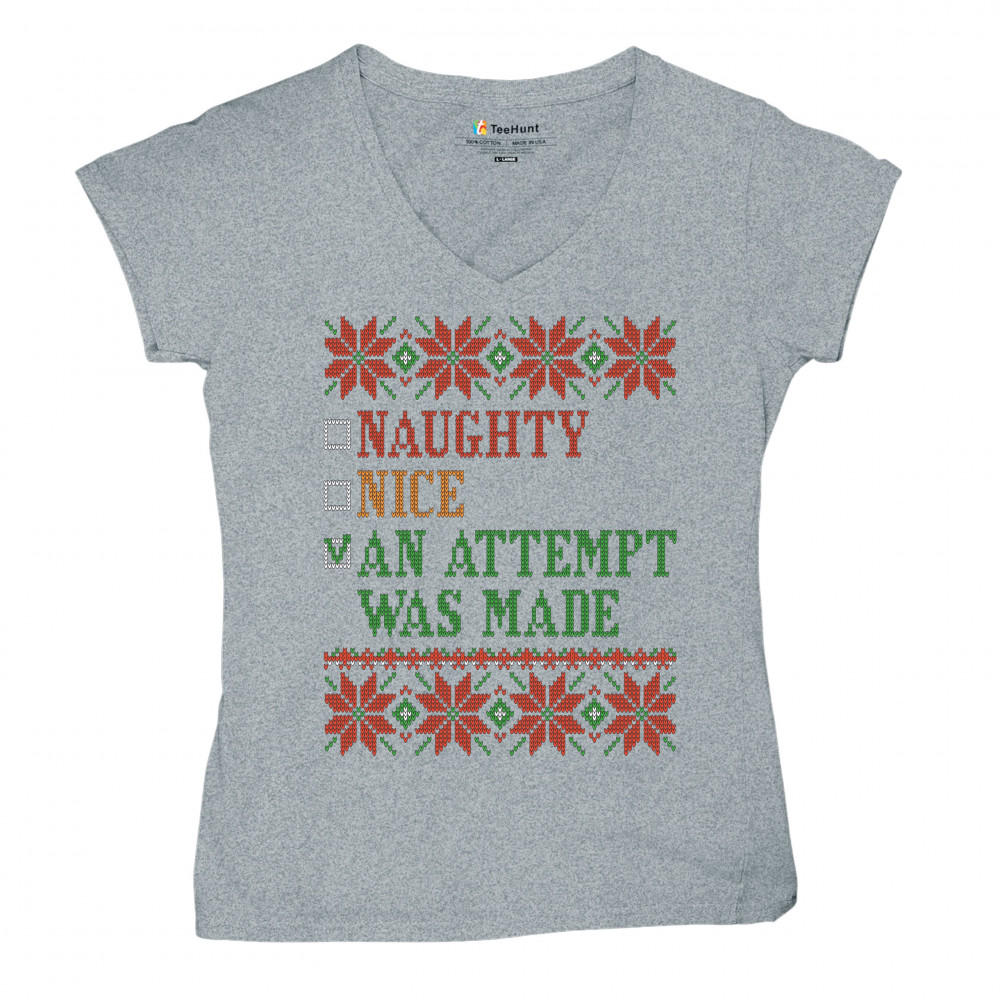 AN ATTEMPT WAS MADE women's v-neck t-shirt ugly sweater naughty or nice tee gray