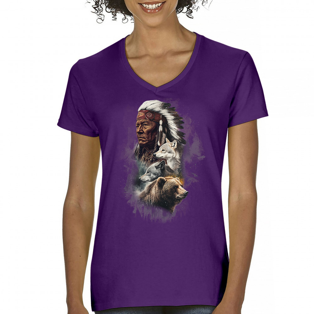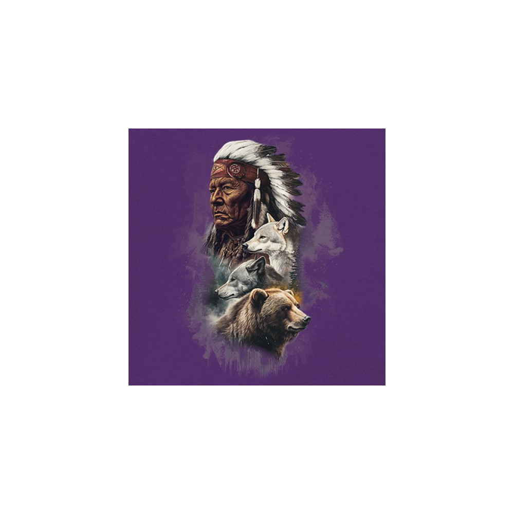 Celebrate spiritual strength and heritage with this design featuring a Native American elder alongside wolves and a bear. This tribal and totemic art reflects wisdom, guardianship, and deep forest spirit energy. Perfect for cultural pride, animal lovers, and those connected to spiritual symbolism in nature.