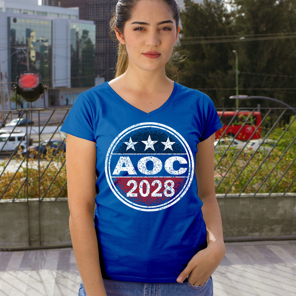 Show support for AOC 2028 with this patriotic distressed badge design. Great for progressives, rallies, events, and young political activists.