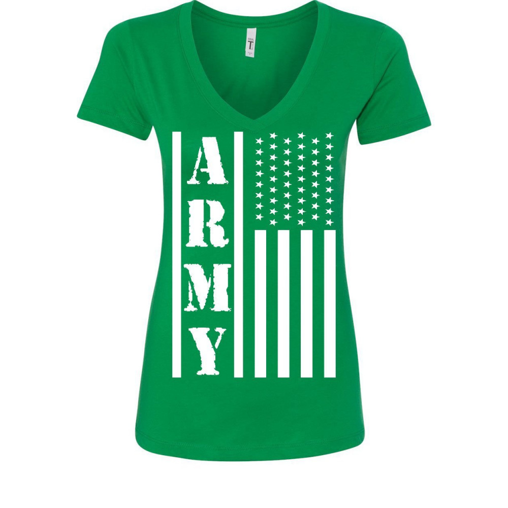 ARMY FLAG MILITARY women's v-neck t-shirt patriot veteran stars & stripes honor green