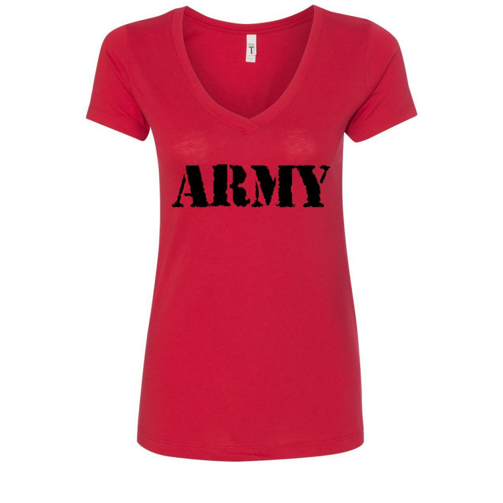 ARMY BLACK army women's v-neck t-shirt military veteran pow mia patriotic veteran's day red