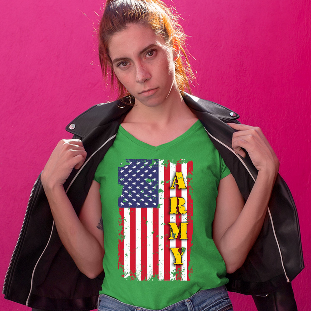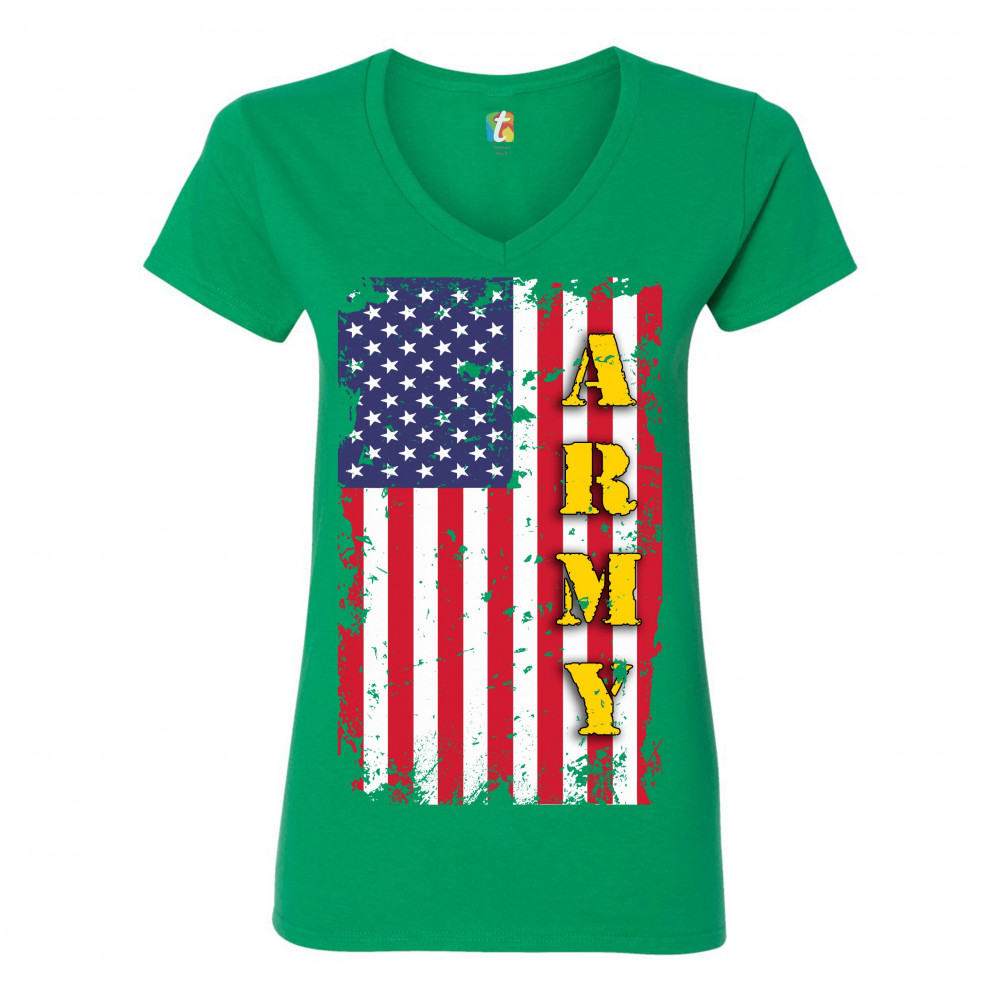 ARMY women's v-neck t-shirt american flag united states armed forces tee green