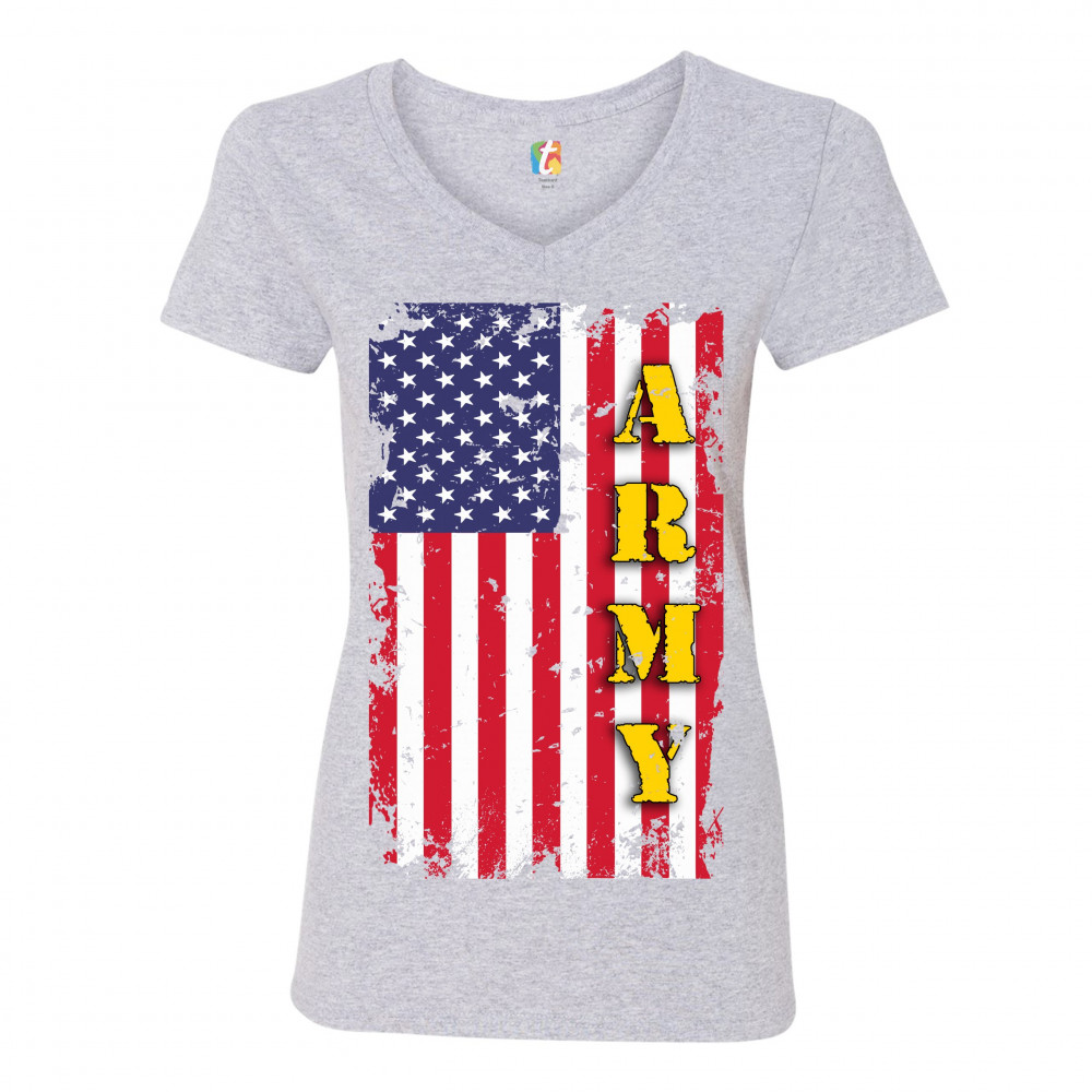 ARMY women's v-neck t-shirt american flag united states armed forces tee gray