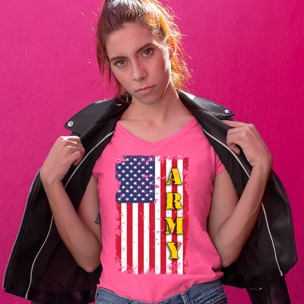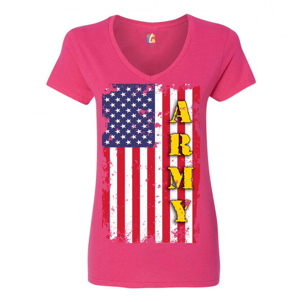 ARMY women's v-neck t-shirt american flag united states armed forces tee pink