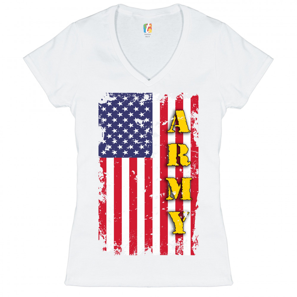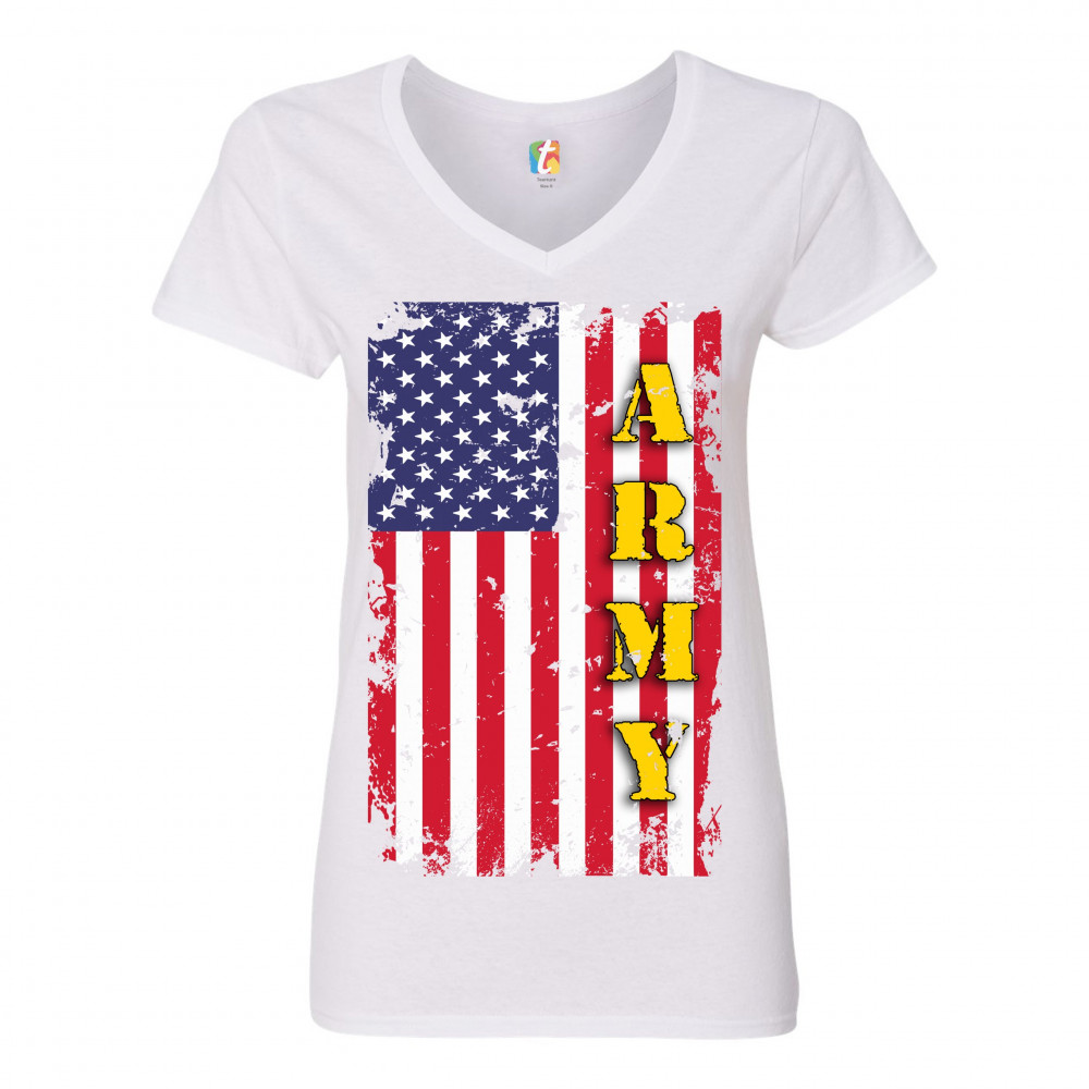 ARMY women's v-neck t-shirt american flag united states armed forces tee white