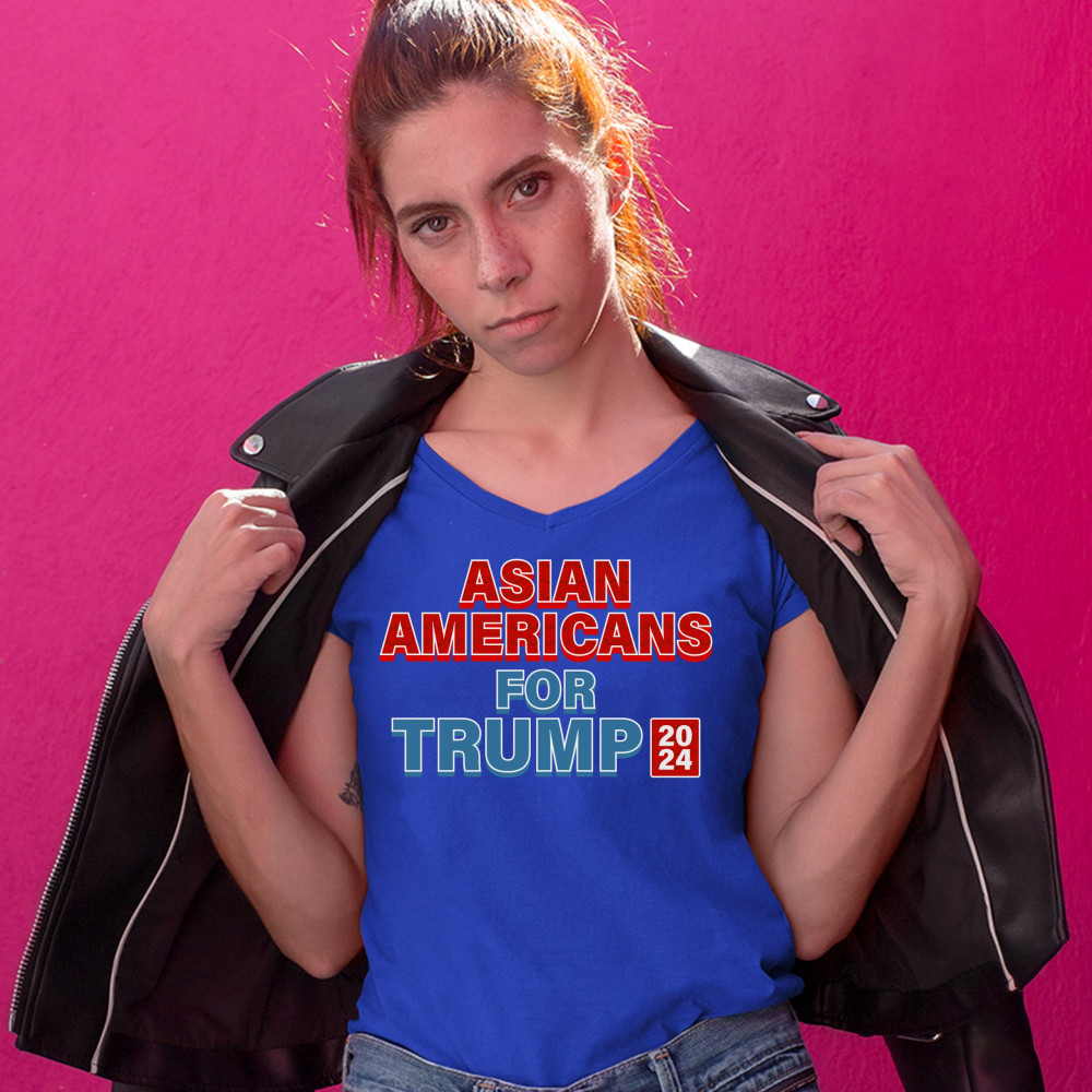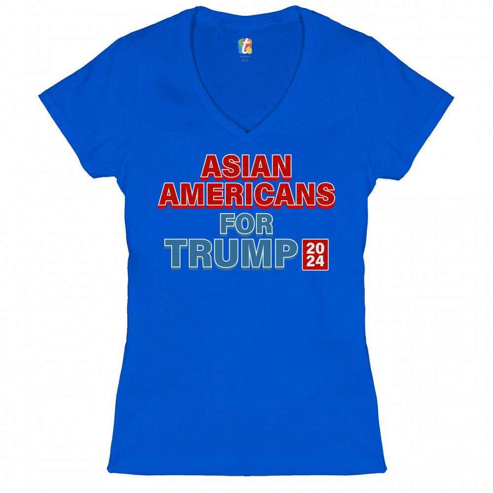ASIAN AMERICANS FOR TRUMP 2024 women's v-neck t-shirt conservative maga tee royal blue