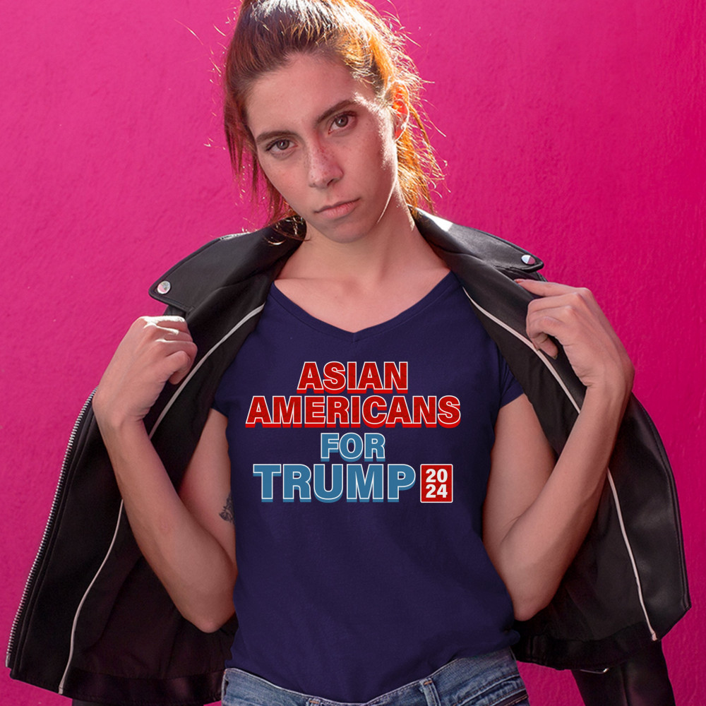 ASIAN AMERICANS FOR TRUMP 2024 women's v-neck t-shirt conservative maga tee navy blue