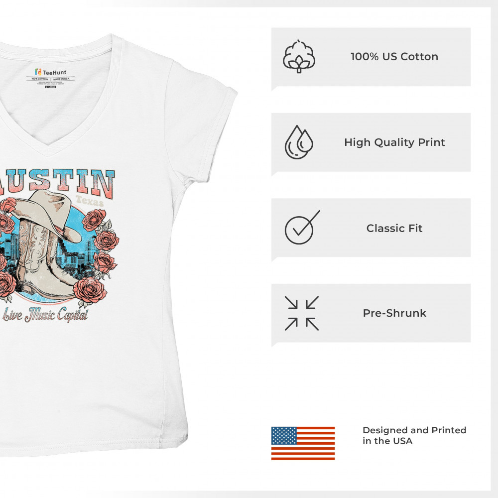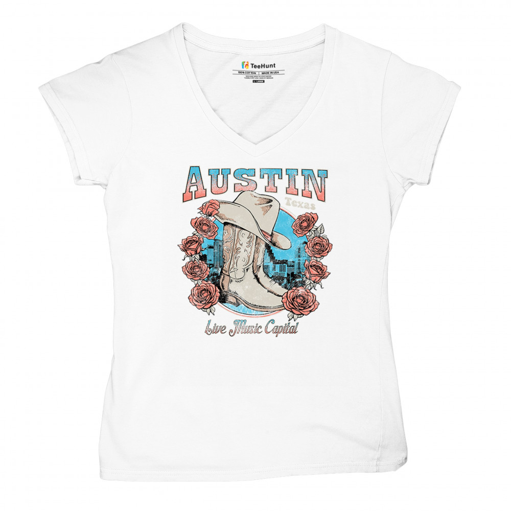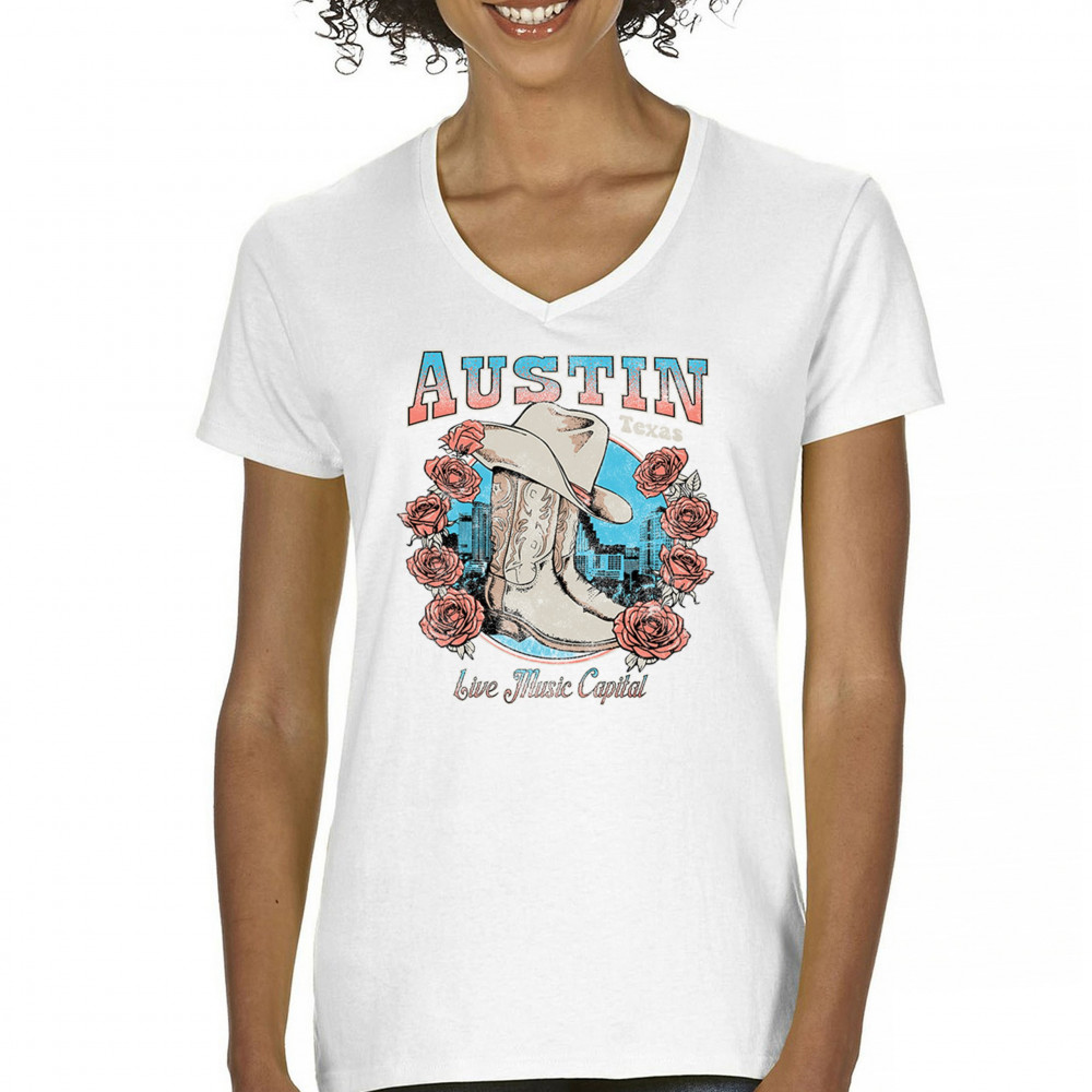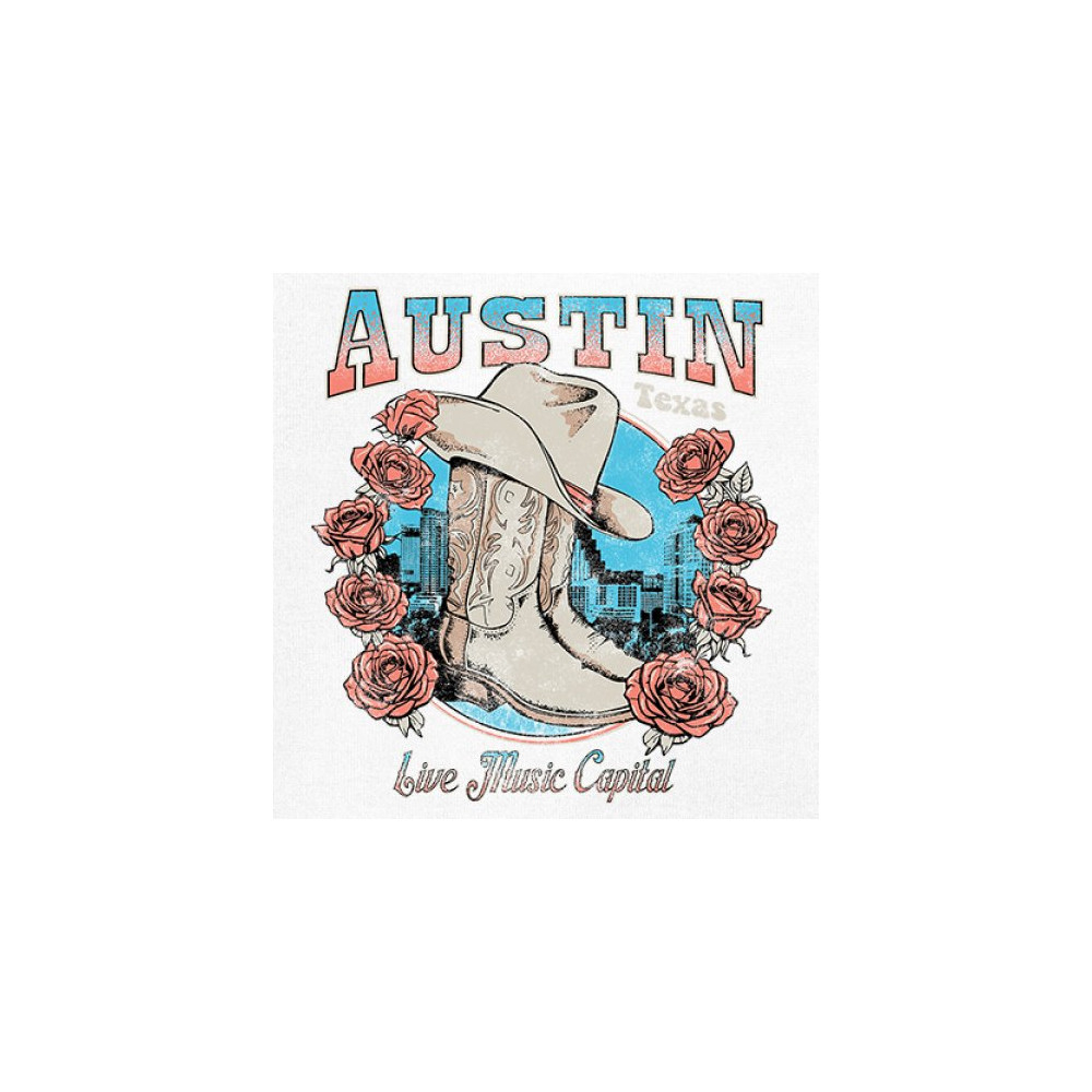 Austin TX Live Music Capital comes alive in this vintage cowgirl boots and hat design, accented by roses and the city skyline. Perfect for lovers of country music, honkytonk vibes, and western chic, this design embodies southern spirit, rustic grit, and the proud Americana aesthetic of Texas’ iconic music scene.