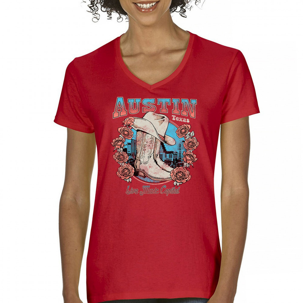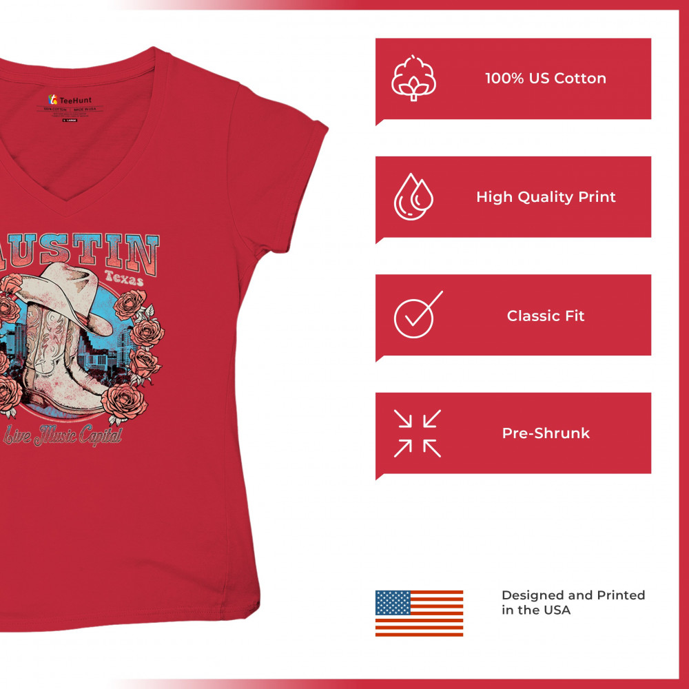 Austin TX Live Music Capital comes alive in this vintage cowgirl boots and hat design, accented by roses and the city skyline. Perfect for lovers of country music, honkytonk vibes, and western chic, this design embodies southern spirit, rustic grit, and the proud Americana aesthetic of Texas’ iconic music scene.