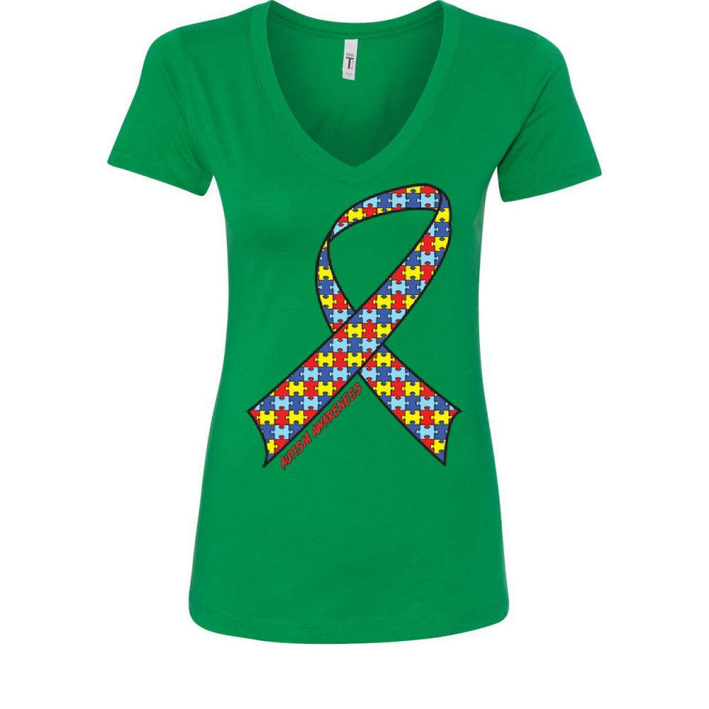 AUTISM AWARENESS RIBBON women's v-neck t-shirt support care love asd asperger green