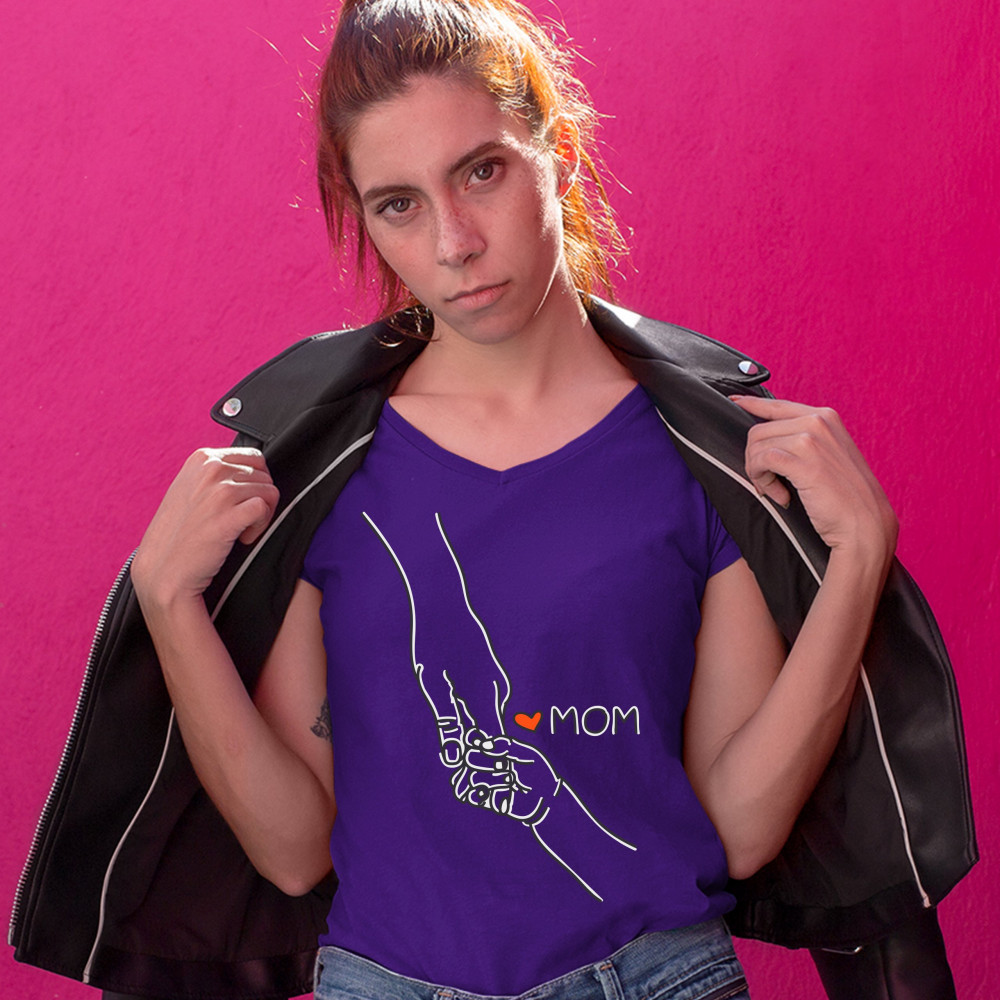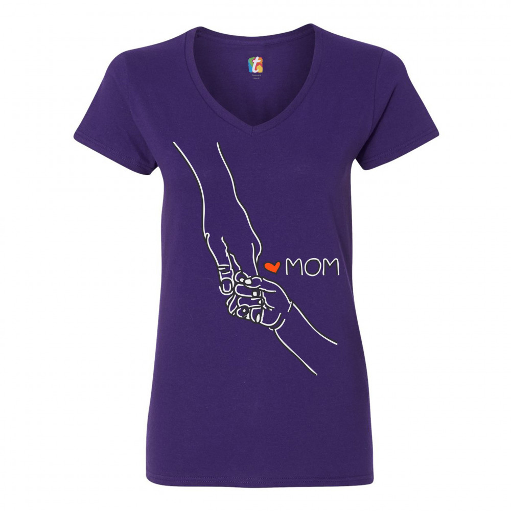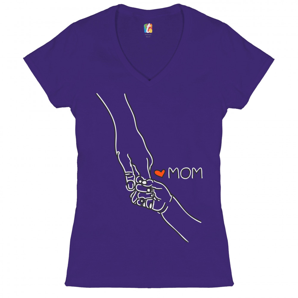 BABY HOLDING MOTHER'S HAND women's v-neck t-shirt love my mom mother's day tee purple
