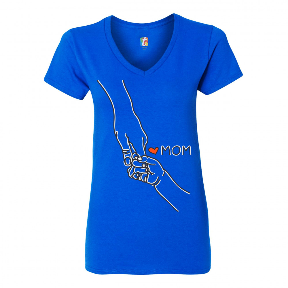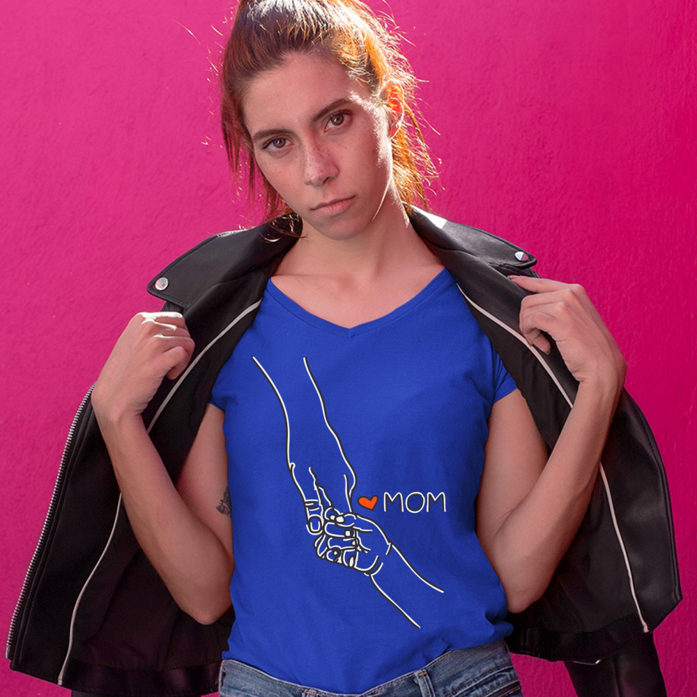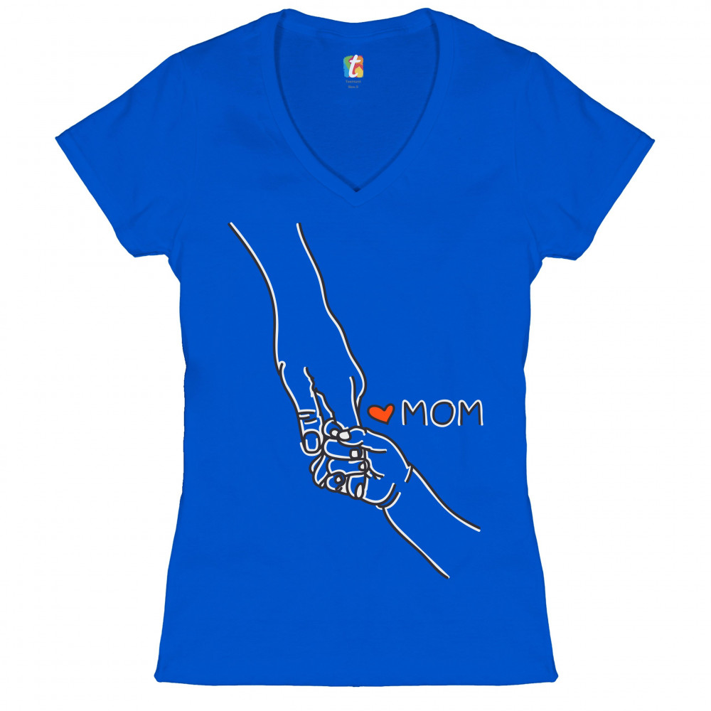 BABY HOLDING MOTHER'S HAND women's v-neck t-shirt love my mom mother's day tee royal blue