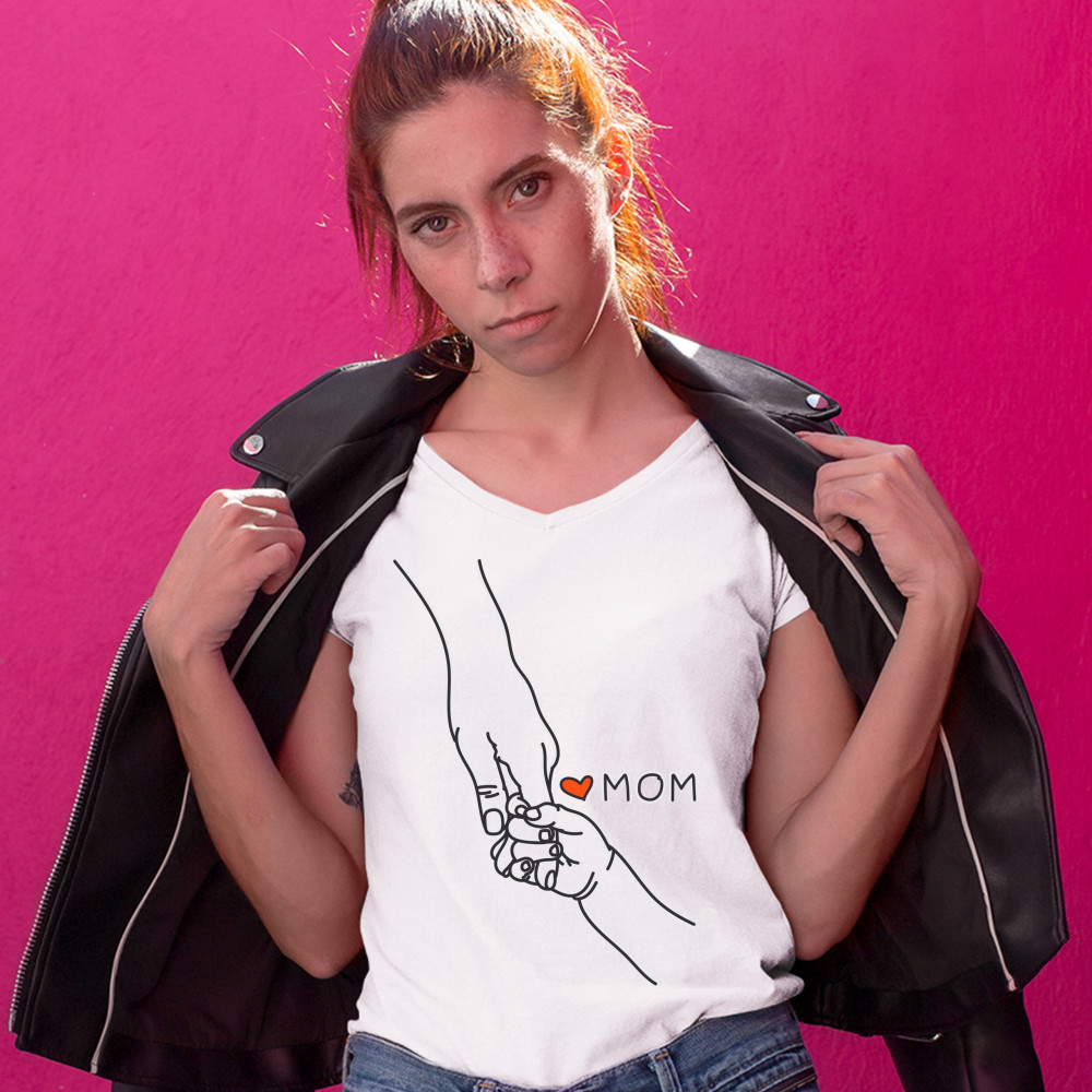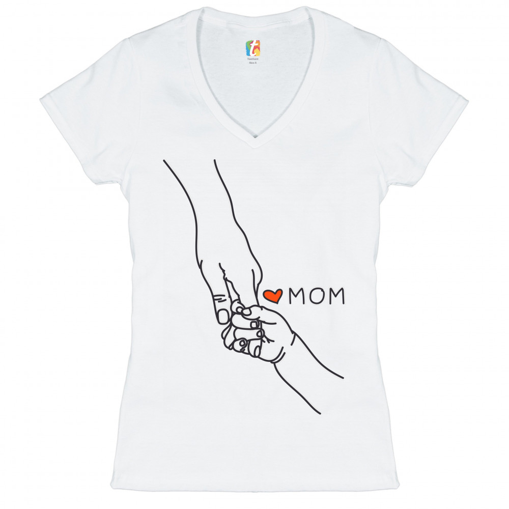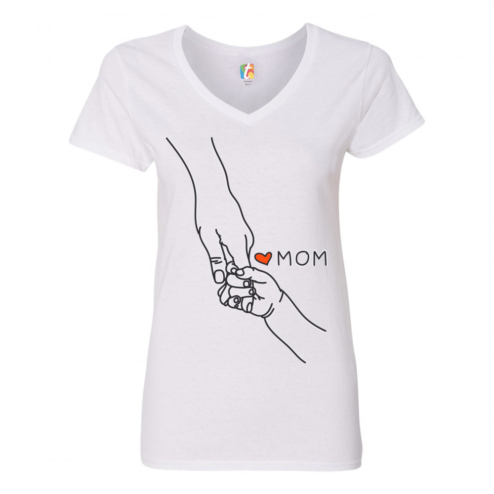 BABY HOLDING MOTHER'S HAND women's v-neck t-shirt love my mom mother's day tee white