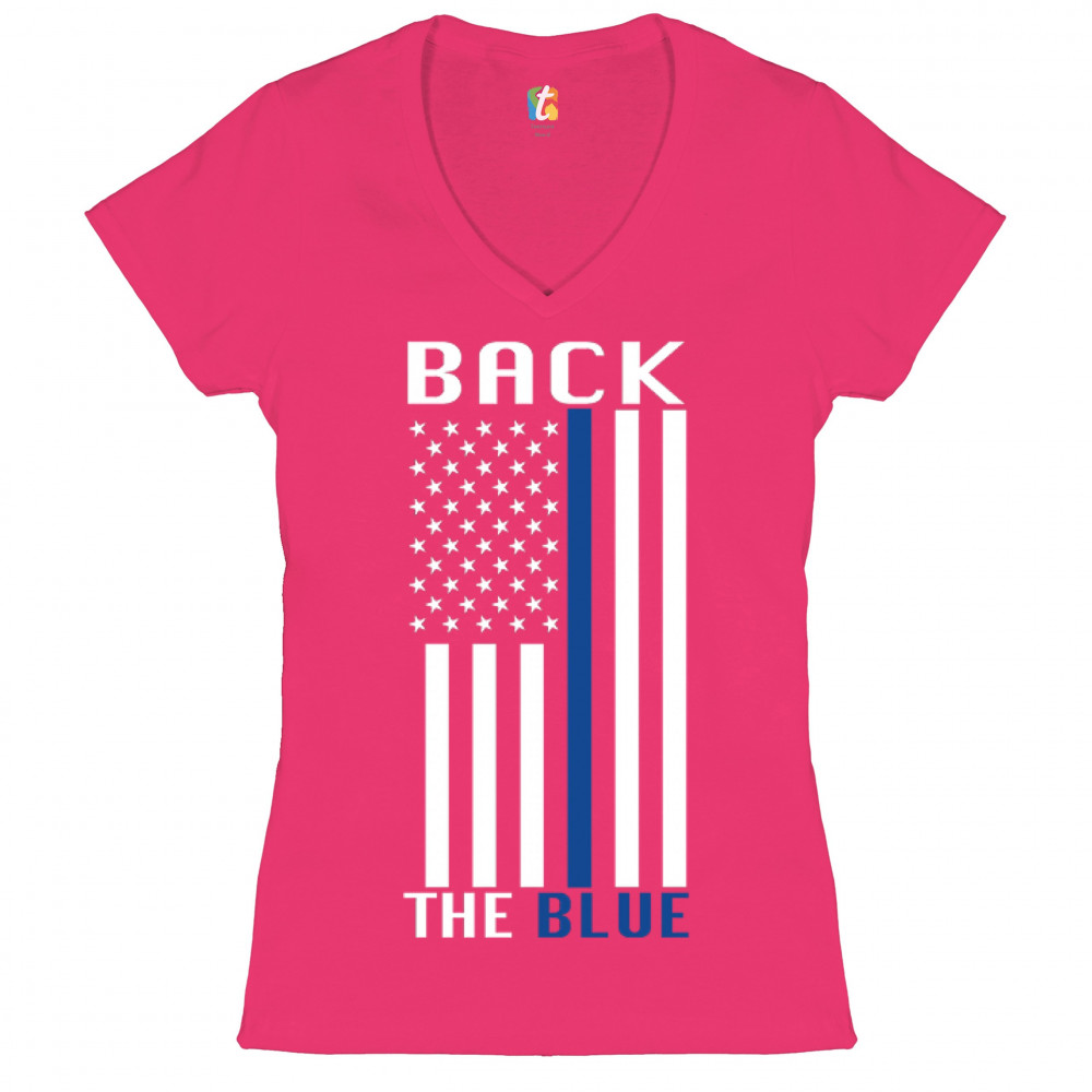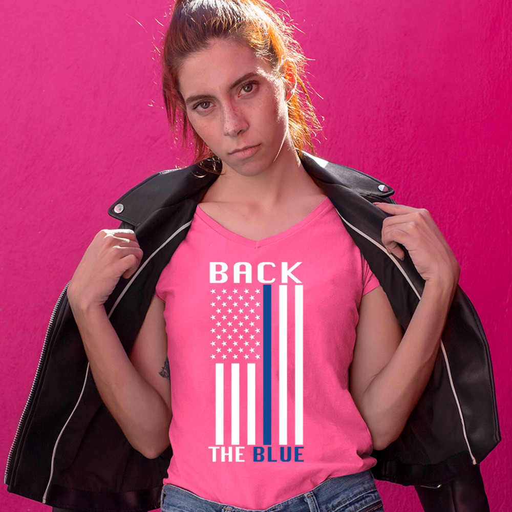 BACK THE BLUE AMERICAN FLAG women's v-neck t-shirt police law enforcement tee pink