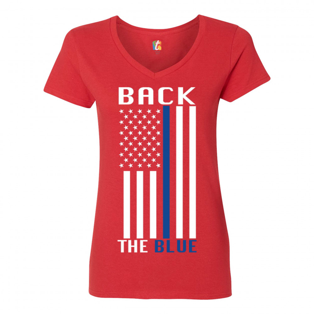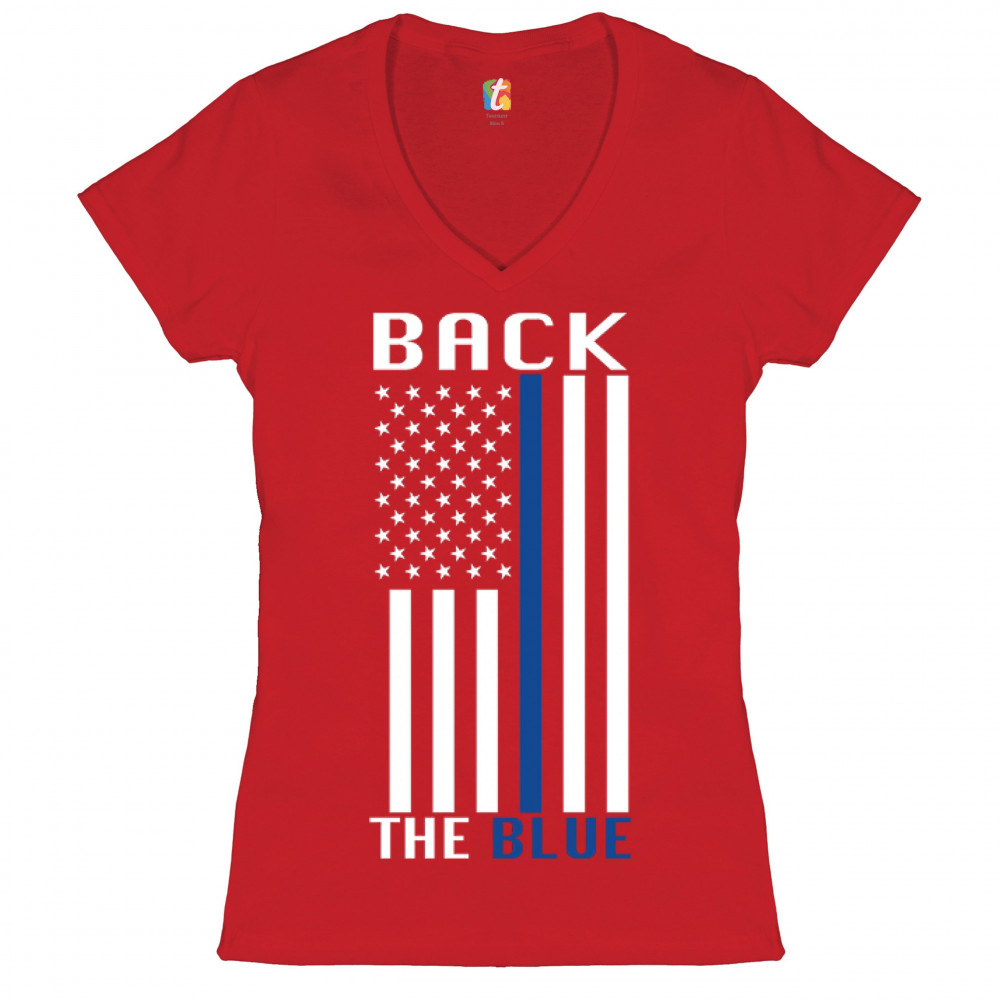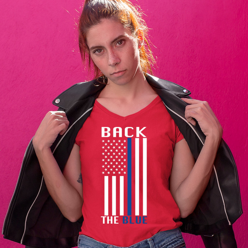 BACK THE BLUE AMERICAN FLAG women's v-neck t-shirt police law enforcement tee red