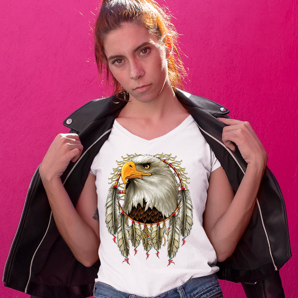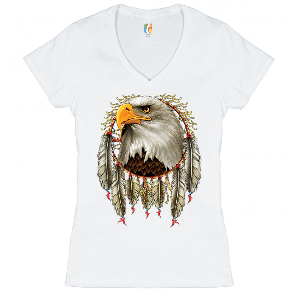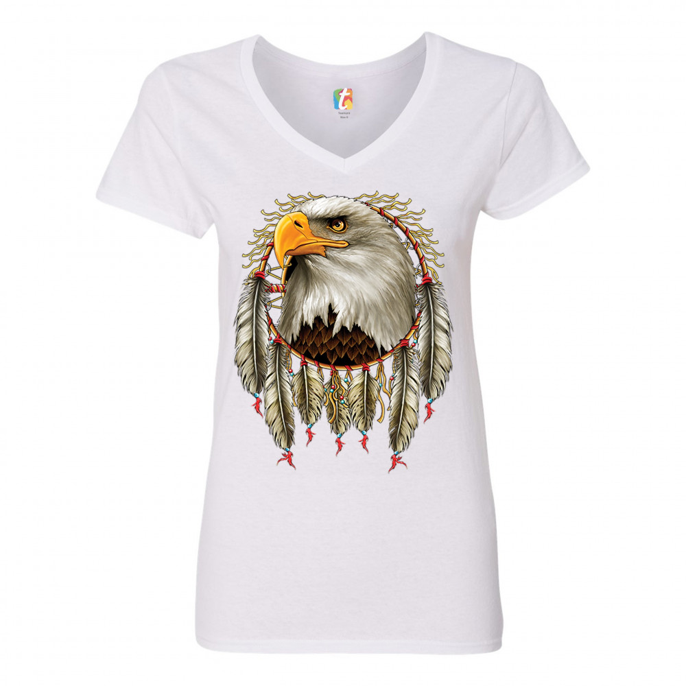 BALD EAGLE DREAMCATCHER women's v-neck t-shirt indigenous native american tee white