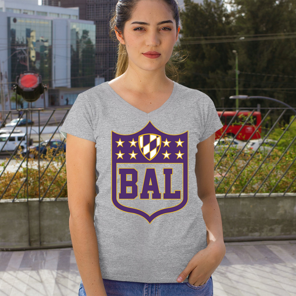 Bold BAL shield design for Baltimore football fans. Vintage sports shirt, collegiate style, and perfect Game Day Baltimore tee.