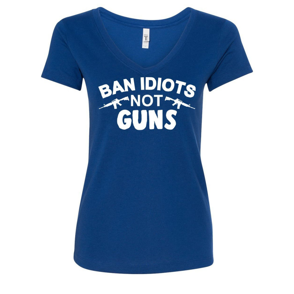 BAN IDIOTS NOT GUNS women's v-neck t-shirt patriot 2nd amendment pro guns arms royal blue
